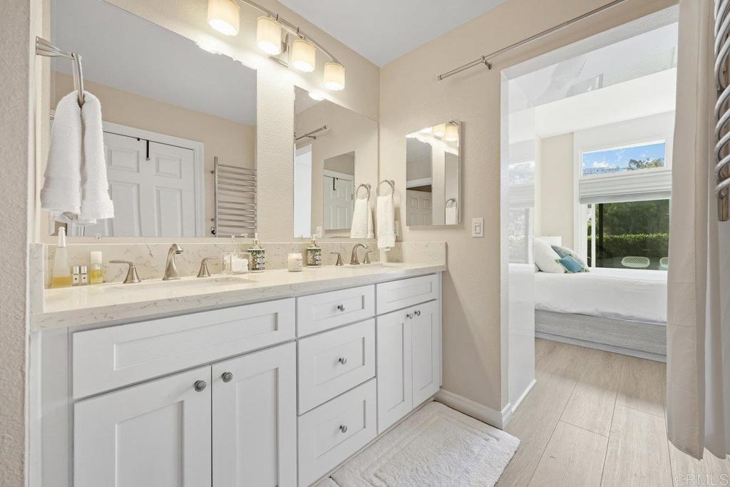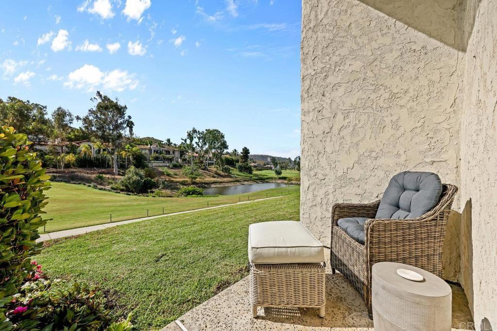 Available from January 1, 2026-May 31, 2026. Enjoy a luxurious short-term rental experience in this beautifully furnished, upgraded home! This property boasts stunning golf course views and elegant, modern furnishings throughout. The breathtaking greenbelt views of the prestigious Legends Golf Course at Omni La Costa can be seen from a private patio and all the rooms. Relax in air-conditioned comfort, with a large kitchen featuring top of the line appliances including a stackable washer & dryer, farm style sink & complemented by beautiful modern cabinetry with soft close cabinets and pull out shelving. The separate dining room offers a large space for entertaining while enjoying the view. The bedroom offers a second private patio, ensuite bathroom and built in custom modern drawers and cabinets for great storage. The home features upgraded flooring, electronic drapes and a stylish, contemporary design to make your stay both comfortable and memorable. The community offers a refreshing saltwater pool and 2 tennis courts. There is an assigned parking space in the community garage & one uncovered space. You will enjoy the convenient location close to the beach, shopping and restaurants. Perfect for those seeking a high-end, tranquil retreat!
