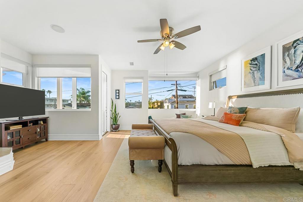 Located west of I-5, less than one block to the sand! Enjoy extraordinary panoramic ocean views and incomparable beach proximity. Custom built home with high-quality materials. Current owner spent close to $200,000 on improvements and upgrades! Central air conditioning, kitchen remodel (2022), new flooring throughout most of the home. Rare 3-car attached garage with storage, incredible rooftop deck, main level bedroom and bath, two fireplaces. Front yard is gated, rear yard has a private spa. NO HOA and no Mello-Roos. This is a DETACHED HOME, NO COMMON WALLS. Move-in ready condition and priced competitively (check the comps and price per square foot!). Award-winning Carlsbad schools! Walk to The Village.