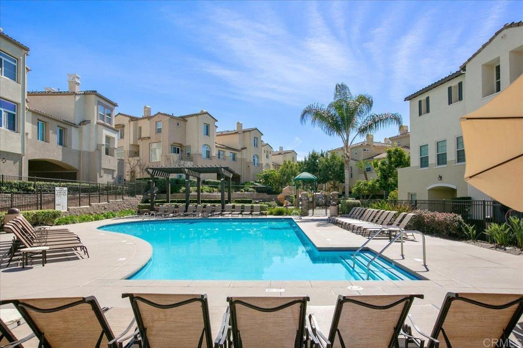 Welcome to 404 Almond Rd, a beautifully updated townhome in the gated Coronado Ranch community of San Marcos, where modern design meets elevated lifestyle. Perched in a prime location with views to the west, this two bedroom residence captures stunning sunset skies and gentle ocean breezes that make every evening feel special. Step inside to discover an open-concept living space filled with natural light and effortless flow. The gourmet kitchen features stainless steel appliances, granite countertops, and a breakfast bar perfect for entertaining. Enjoy morning coffee or evening wine on your private balcony overlooking the hills. Additional highlights include an attached two-car garage, in-unit laundry, and central A/C. Coronado Ranch residents enjoy resort-style amenities: a pool, spa, fitness center, BBQ area, playground, dog park, and clubhouse, all within a secure gated environment. Just minutes from Cal State San Marcos, shopping, dining, and the 78 Freeway, this home offers the perfect blend of comfort, convenience, and California luxury. Ideal for the discerning buyer seeking elevated design, a sense of privacy, and a move-in-ready home with exceptional value. VA approved!