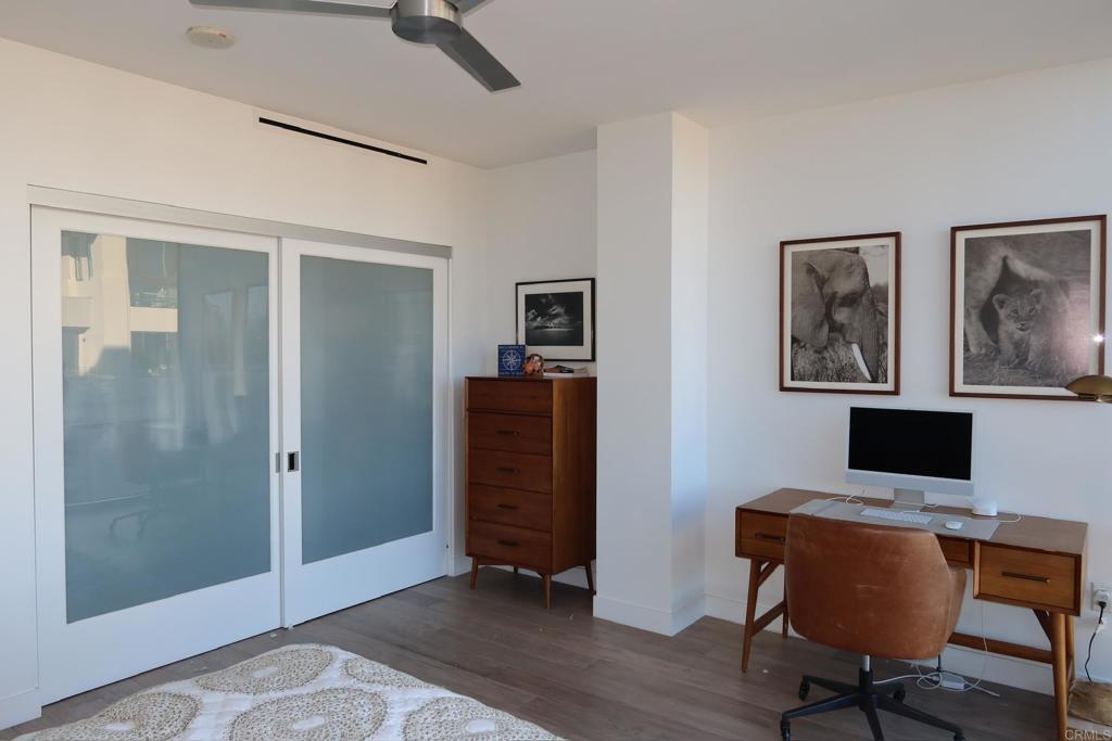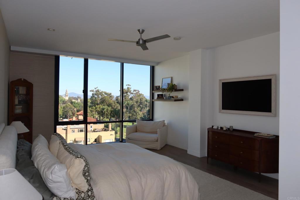 Spacious and sophisticated, this sun-filled re-sale residence embodies modern elegance at the intersection of style and comfort. Virtually new, it showcases grand-scale living from the impressive double-door entry to soaring 10-foot ceilings and a disappearing wall of glass that opens to an expansive terrace—perfect for al fresco entertaining. The great room is framed by a wall of windows capturing stunning views of the California Tower at Balboa Park, with a dynamic backdrop of lush greenery and the vibrant energy of the 5th Avenue corridor. The wrap-around terrace extends the living space outdoors, offering views toward the ocean and over Bankers Hill, creating a seamless indoor-outdoor flow ideal for Southern California living. 41West represents the new standard of luxury in Bankers Hill—come for the contemporary sophistication, and stay for the unparalleled lifestyle.