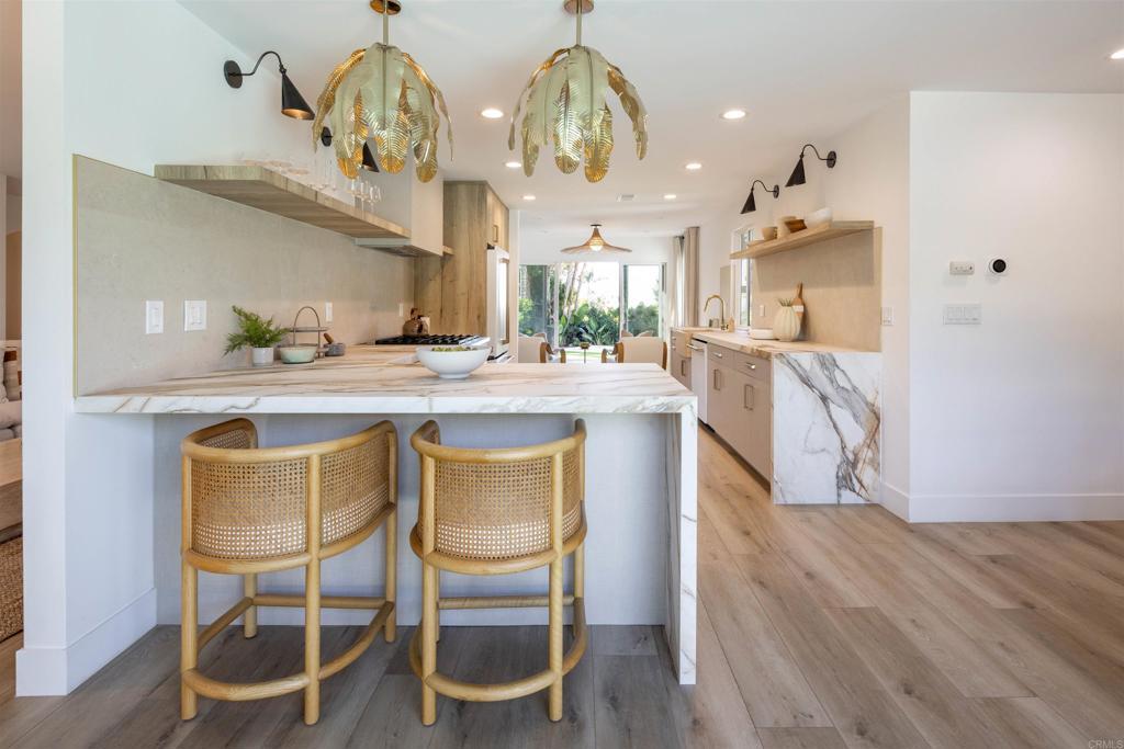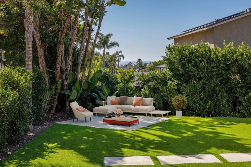 Stunning single-level coastal modern smart home with ocean views, cohesive upgrades, and an expansive backyard oasis in Fire Mountain, just minutes to the beach. Recently reimagined with high-end design in mind and curated by a professional artist. Filled with natural light, the home features open living, multiple seating areas, and an alcove dining room. The gourmet kitchen boasts two-tone linen and Halifax Oak cabinetry, luxury white Café appliances, and porcelain countertops. Sliding glass doors frame the kitchen and living areas from all sides, expanding the space to the wraparound yard, creating an indoor-outdoor lifestyle. The layout includes dual primary suites, each with an ensuite bath featuring decorative tile and custom lighting. Perfect for entertaining, the outdoor space offers a pool with water features, hot tub, raised seating with firepit, and multiple areas for dining & lounging, including a built-in bbq bar with Tahitian-style palapa. Additional highlights include owned solar, two Tesla batteries, EV charger, smart lighting and AV system with indoor & outdoor surround sound. An oversized detached two-car garage with epoxy flooring and two large sheds provide additional space for storage, a gym, or studio office. Dual electric gates with circular driveway offering security, privacy, and ample parking. Within biking distance to the beach and close to top-rated schools, parks, shopping, and dining. Enjoy coastal living at its best.