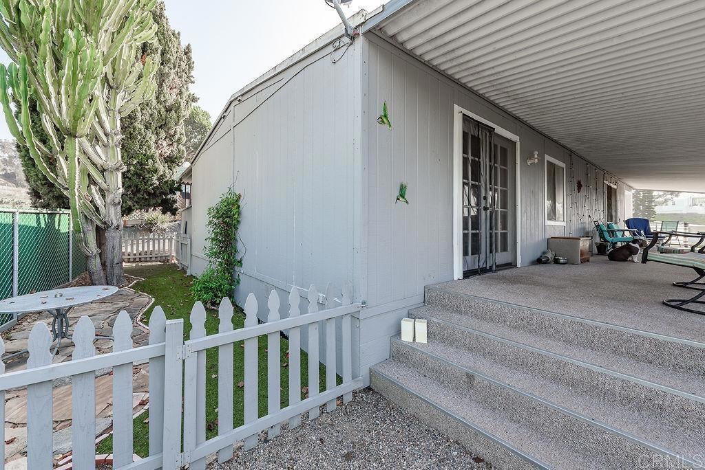 Step into easy coastal living in this beautifully updated 2-bedroom, 2-bath home in the sought-after 55+ Green Valley community—where relaxed style, friendly neighbors, and ocean-kissed breezes set the pace for every day. Imagine starting mornings on your expansive 40-foot deck with a cup of coffee and the sound of leaves whispering through tall trees. The fully fenced yard offers generous outdoor space for gardening, a pet retreat, or simply soaking in the quiet ambiance. Inside, abundant windows fill each room with natural light, creating a bright, cheerful setting that feels both welcoming and refined. The heart of the home—the large, efficient kitchen—has been thoughtfully updated with quartz countertops, newer cooktop, refrigerator, sink, fixtures, and dishwasher, creating a workspace that’s as stylish as it is functional. The open layout allows you to cook, serve, and connect with guests easily, while the adjacent dining area keeps the conversation flowing. Both bathrooms feature modern marble countertops that blend beauty with durability, and the primary suite includes double sinks for extra convenience. Updated laminated flooring offers a clean, cohesive look and is simple to maintain. The home’s newer furnace ensures year-round comfort, and the washer and dryer convey—making move-in effortless. Nearly all furnishings are available for purchase, allowing an easy transition into your new lifestyle. Outside, the improvements continue with newer fencing, paint, and skirting, giving the exterior a fresh, polished presentation. The covered two-car carport provides sheltered parking, and the attached storage shed keeps tools, bikes, and hobby gear neatly organized. Three standout features make this property truly special: A sun-filled interior with abundant windows—perfect for homeowners who love bright, open spaces. A large private deck and fenced yard—rare in manufactured home communities and ideal for outdoor living. A remodeled kitchen and baths with quality finishes—delivering move-in confidence and modern appeal. Beyond your doorstep, Green Valley Mobile Home Park offers a full suite of amenities designed for connection and comfort. Residents enjoy a refreshing pool and spa, a lively clubhouse with billiards, darts, library, TV lounge, game table, and cozy fireplace. A large meeting room and community kitchen host social gatherings, speakers, and special events. You’ll also find a low-cost RV parking area, free car wash station, and well-maintained grounds that reflect pride of ownership throughout. Practical perks make living here even easier: space rent includes water, trash, and sewer, and two pets are welcome. The community’s location is unbeatable...just five miles from the beach and close to Costco, shopping, restaurants, transportation, and medical offices—offering coastal weather with inland convenience. Whether you’re downsizing, seeking a seasonal retreat, or ready for a low-maintenance home in a friendly environment, this property delivers exceptional value, comfort, and style. Schedule your private showing today and experience the easy, breezy charm of Green Valley living for yourself.