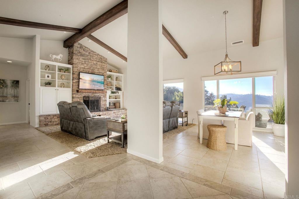REDUCED $30,000! PRICED TO SELL! Panoramic westerly sunset views from most rooms! Very private single story custom estate situated amidst 2.98 acres in beautiful Bonsall! Paid solar & EV charger. Seller recently invested $45,000 in new pavers & retaining wall for expansive outdoor living! Enjoy gentle ocean breezes daily! Freshly painted walls/trim/doors & cabinetry. Open floorplan. Vaulted ceiling in family room with built-in wall unit & fireplace. Kitchen features double oven & leathered granite counters with exceptional views from every vantage point! Primary BR is located on a separate wing from 3 other bedrooms & optional 5th BR/bonus room. Primary ensuite features a Coffered ceiling, cozy fireplace & built-in California Closet & has direct access to the back patio & spa! Bonus room has a wet bar & private entrance-great for guests, game room, gym etc. Built-in speakers in most rooms & outdoor entertaining space. Central A/C throughout+split unit in Primary BR. Fenced backyard for pets to roam freely. 2 raised garden beds & above ground spa. Tree lined extended driveway entrance with avocado trees & floral varieties. Sprinklers are conveniently on timers. Oversized garage with work stations. Newer tankless water heater. Bonsall schools. No HOA. This peaceful sanctuary offers convenient access to I-15 & Hwy 76 yet feels miles away in this semi-rural community! COME SEE!