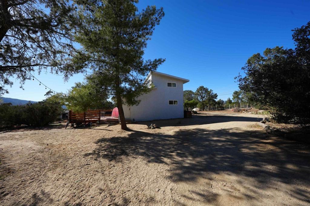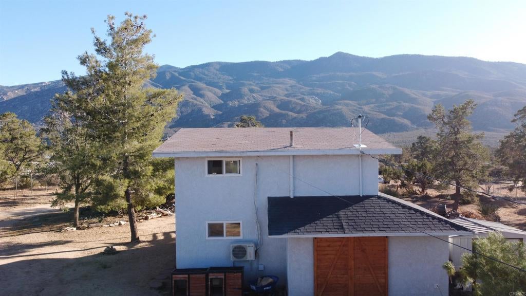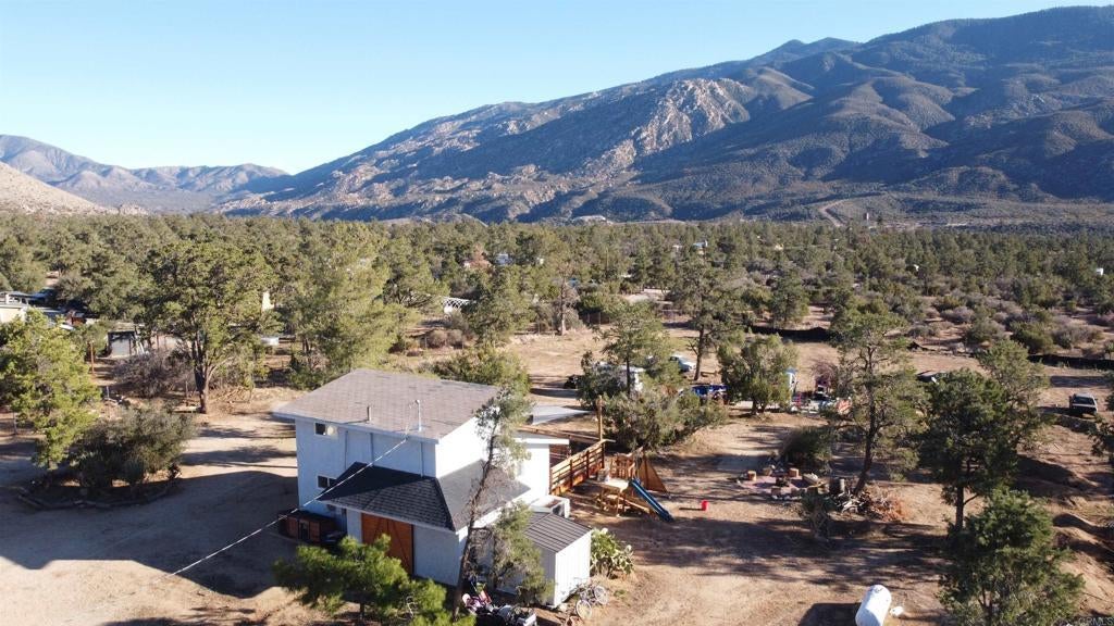 Welcome home to your mountain retreat with views that are sure to impress. This cozy home has been recently remodeled and features on trend white shaker cabinets, durable Quartz countertops and stainless steel appliances. Upgraded LVP flooring on the lower level main area and bathrooms with plush carpet found in all 3 bedrooms. The upstairs houses the large primary bedroom with views abounding! Ample light floods in from all the windows, as you get to take in the occasional snow capped mountains. A fully remodeled bathroom is off of the primary bedroom as well. Downstairs features two more bedrooms with an updated bathroom in between. Heading outside you'll find a brand new deck with canopy shades and string lights--a perfect functional space for outdoor seating or simple entertaining. The mostly flat useable acre is a blank canvas for you to make it your own and the possibilities are endless! Surrounded by the San Jacinto mountains, roughly a 20 minute drive to Palm Desert and close to San Diego and Los Angeles, this charming home is just waiting for you to call it your own!