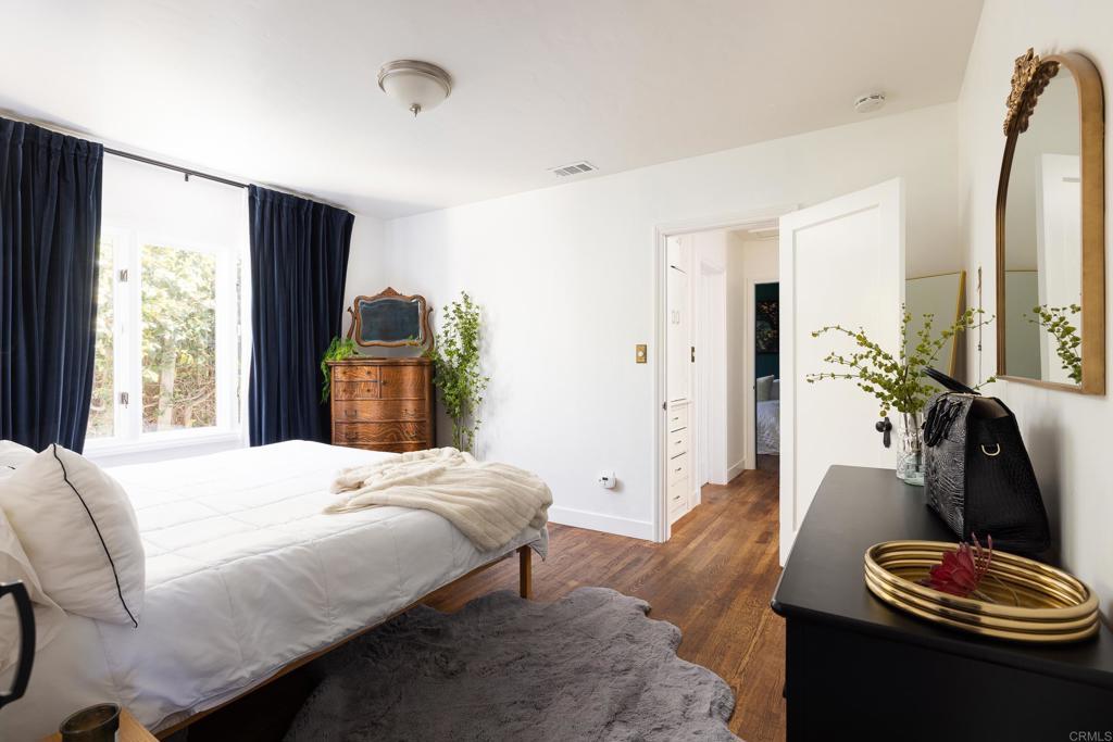 RARE gem in Oceanside’s historic Seaside neighborhood, famed for its white concrete streets & vintage charm. Perched on a PRIME OCEAN-VIEW street west of the 5, this classic California beach bungalow offers perfect walkability, an indescribably serene atmosphere designed for wellness and relaxation. Westerly OCEAN breezes keep fresh air circulating through this natural haven, updated with modern Non-toxic upgrades. Window-lined walls bathe every space in natural light. Preserved charm includes restored original hardwood floors, vintage molding, architectural details, and a gorgeous wood-burning fireplace for cozy evenings. The modern kitchen features ample storage, an adjacent dining area which opens up to a deck making this an ideal space for culinary and entertaining enthusiasts. Bathrooms are tastefully updated. Separate in house laundry area includes additional storage. Main house feature an updated ac/ central heat and ducts The clean, ZEN-Mediterranean landscape features fruiting olive & orange trees, an organic medicinal herb and vegetable garden. The designer-fenced front yard offers a serene space to enjoy sunsets. The separate backyard and grounding deck add a natural oasis. A stunning, permitted ADU ( generates an average of $2600 per month when rented) with private entrance, kitchen, bath, dining area and in unit laundry adds many options including rental income, multi-gen living, office, or a guest house. As an additional upgrade, ADU features a mini split system for indoor temperature control. Possibilities for a roof deck for breathtaking ocean and sunset views. Walk to the beach, award-winning restaurants, downtown Oceanside, and the iconic pier. With quick access to train, freeways and airports, this home offers an ultimate coastal lifestyle.