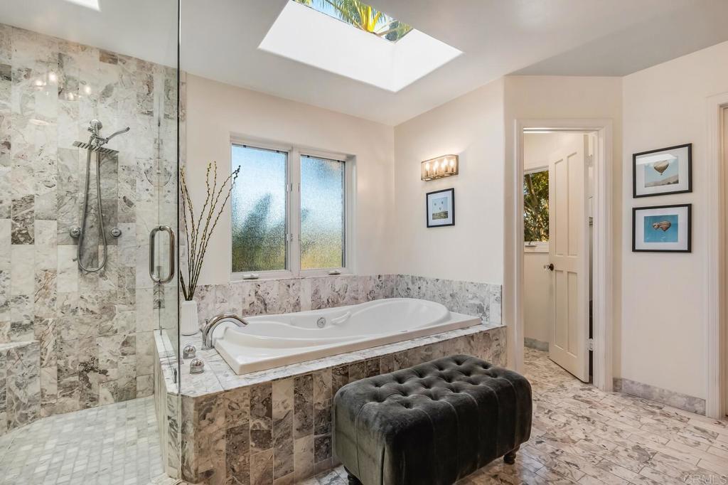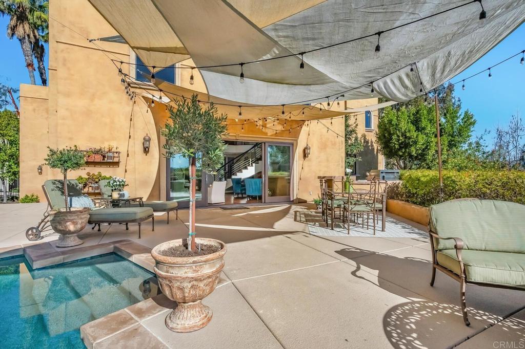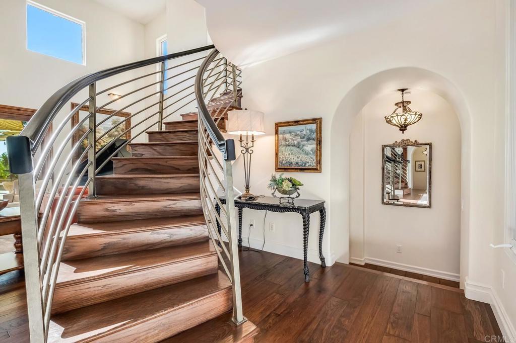 Nestled on a half-acre hilltop lot in Olivenhain, this exceptional Modern-Inspired Italian Villa offers privacy and captivating Rancho Santa Fe views, treating you to inspiring sunrises, evening glow, and valley lights year-round. Step in the front door onto the beautiful Hickory hardwood engineered floors and immediately see the view through the expansive 20' Marvin glass slider. There is plenty of parking on the distinctive stone-patterned main driveway or private 2nd driveway with easy access to the main level. Property highlights include a Chef's Kitchen with island, two main level bedrooms, epic interior curved staircases and mezzanine, a 19' x 23' Great Room with 20' ceilings. Upstairs there is a romantic Primary Bedroom with a fireplace, arched windows, French doors, and a large private sun deck. Out back you'll find an inviting estate pool with raised spa, an outdoor kitchen with BBQ, and a gently winding hillside trail that will take you to two terraces that are perfect for relaxing or entertaining! Natural light floods the interior with close to 40 windows and skylights creating an ambiance that enhances the elegance of this remarkable home. Experience the perfect blend of luxury and functionality, where every detail has been meticulously crafted to offer a lifestyle of comfort and sophistication.