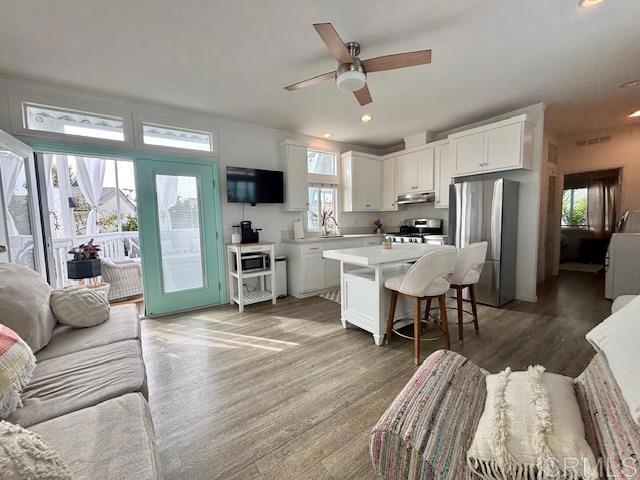 You do not need much more than this PERFECT, beautiful beachside home in Leucadia. Built in 2020, this stunning 1-bedroom, 1-bath manufactured home is just a short walk to the beach and ready for you to move right in! Enjoy modern upgrades throughout, including transom windows, 2” blinds, and elegant French doors with built-in blinds that open to a private outdoor deck with seating and storage. The home features soaring ceilings that create a bright, open, and spacious feel, complemented by lots of windows which make this home light & bright. Step outside to your landscaped garden area, perfect for relaxing or doing a little gardening. A covered carport offers convenient parking and shade. The Riveria community includes fantastic amenities such as a clubhouse with a game room and multi-use space and community pool. Located in the highly desirable town of Leucadia, you’ll be within walking distance of the beach, Farmer’s Market, and an array of local dining, shops, coffee spots, wineries, and surf shops. Monthly space rent is $2,030. No rentals of any kind allowed. Don’t miss this opportunity to own a bright, modern coastal home in one of North County’s most sought-after beach communities!