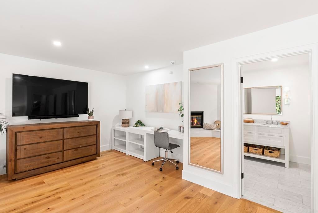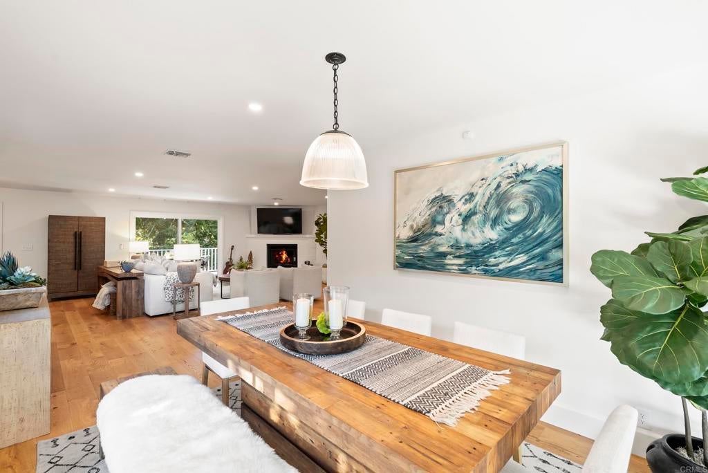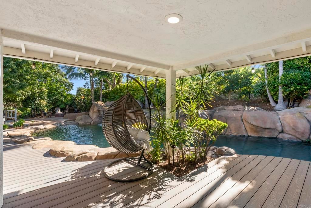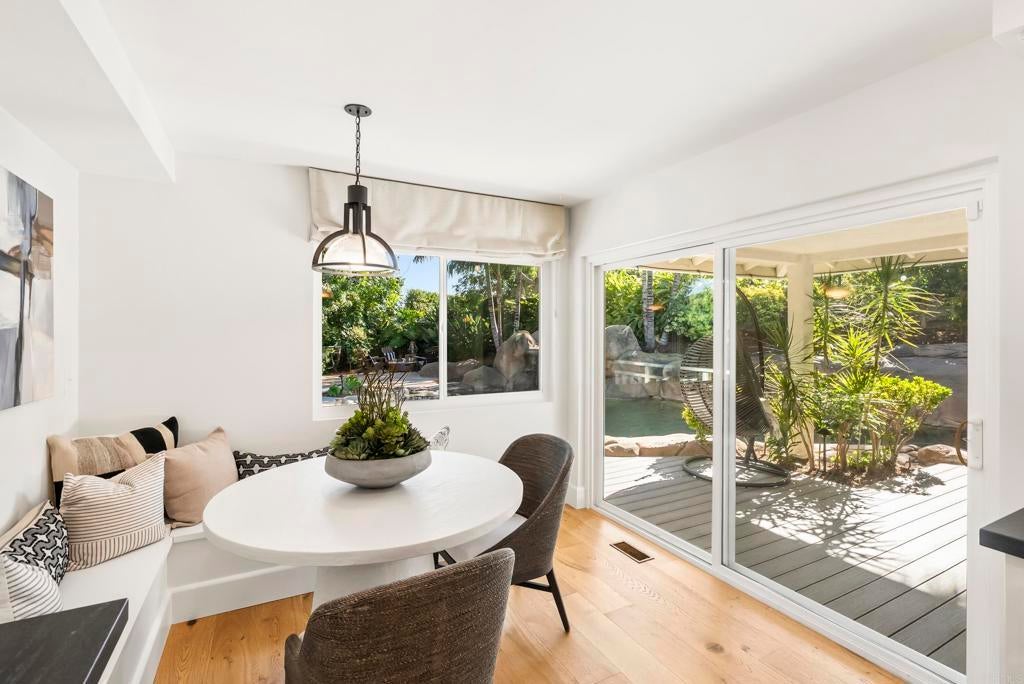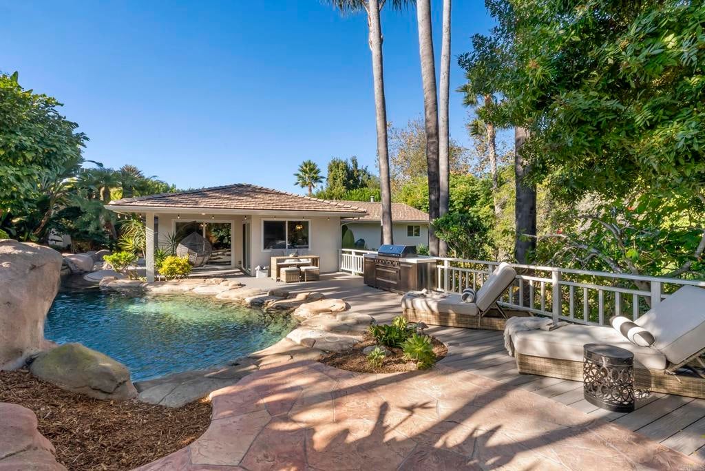 Shangri-La in the Covenant Discover your private oasis—an elegant, single-level-style retreat nestled on a beautifully landscaped, nearly half-acre lot in the heart of the Covenant. Just steps from the historic and charming Village of Rancho Santa Fe, this hidden gem on a private cul-de-sac along Camino Selva offers the perfect balance of tranquility and convenience. Tucked amid lush greenery, this thoughtfully renovated home blends modern sophistication with timeless comfort. Every room captures serene garden views and complete privacy. The interiors feature meticulous updates throughout, including a stunning chef’s kitchen, reimagined baths, custom lighting, newer windows and sliders, and wide-plank white oak flooring. An open-concept design connects the kitchen, spacious living room with fireplace, elegant dining area, and guest powder room—each space flowing effortlessly to the outdoors. The expansive primary suite on the main level is a private sanctuary, complete with a cozy fireplace and spa-inspired bath. Upstairs, two additional bedrooms, two full baths, a laundry room, and a relaxing sauna offer flexibility for family or guests. Outdoors, lush gardens and thoughtfully designed entertaining spaces invite you to unwind. The freeform pool and spa—accented by natural rock water features—create a resort-like ambiance. A vibrant landscape of figs, lemons, limes, pineapple guavas, and roses enhances the sense of seclusion and serenity. With its coveted Covenant address, this property also includes eligibility for membership at the exclusive Rancho Santa Fe Golf and Tennis Clubs. Charming, private, and beautifully updated—this is Rancho Santa Fe living at its best.
