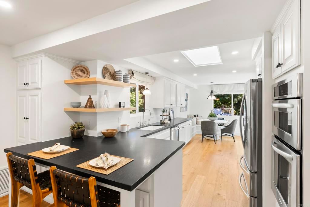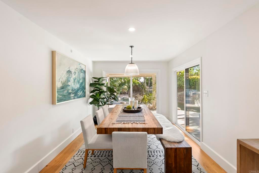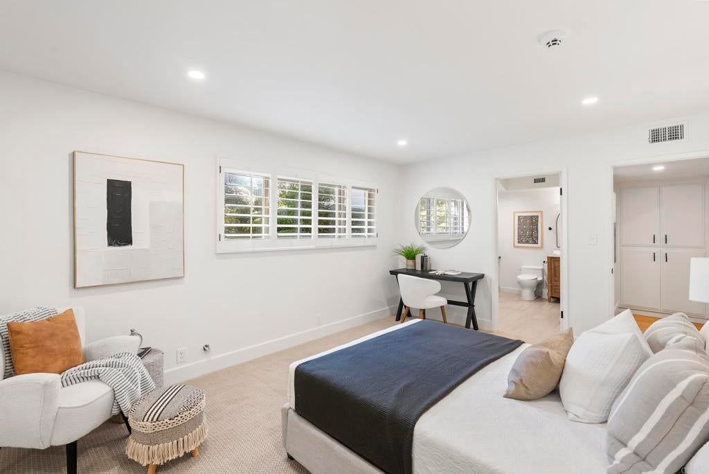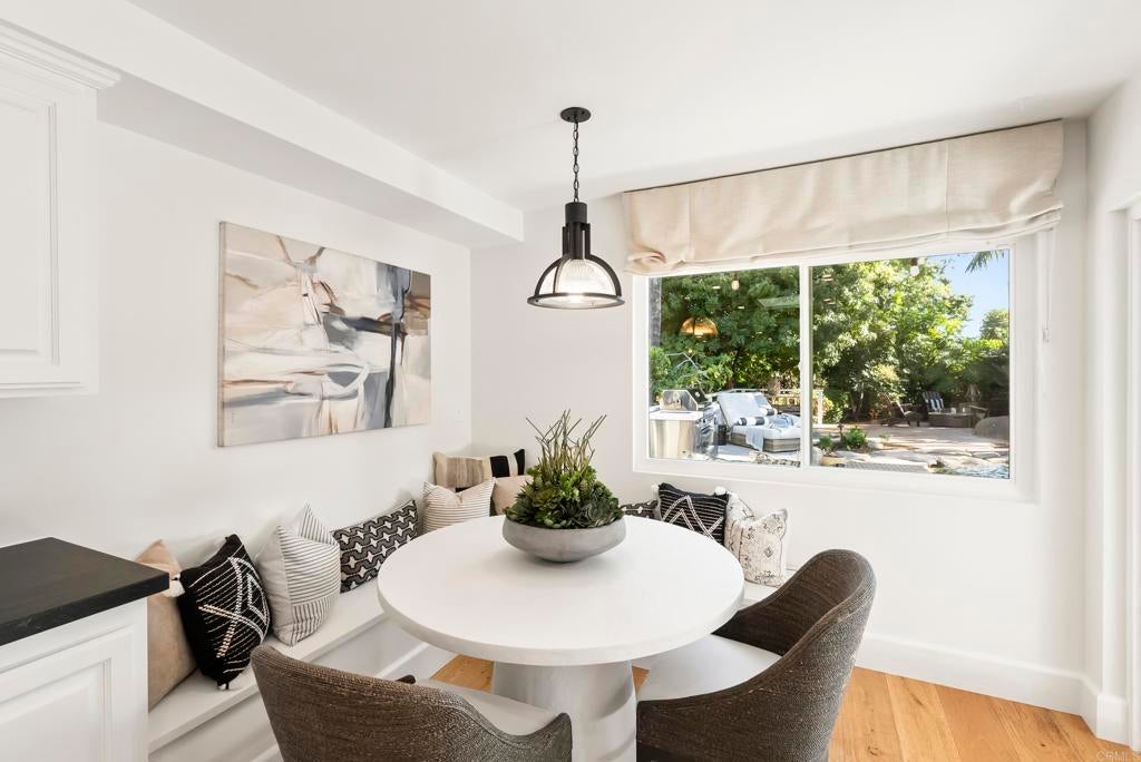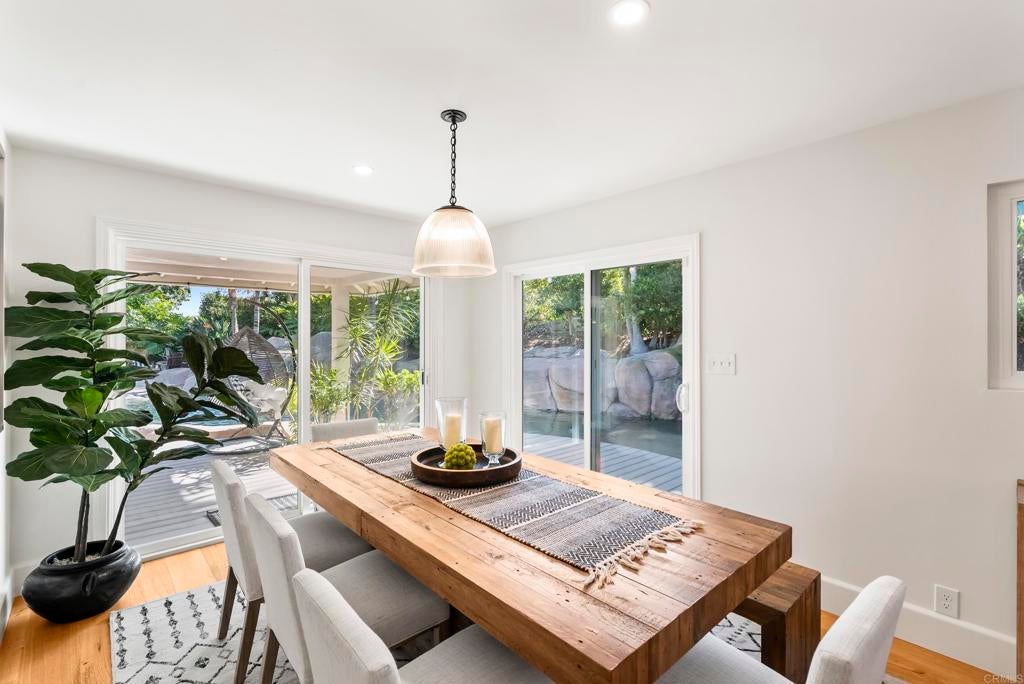 Shangri-La in the Covenant Discover your private oasis—an elegant, single-level-style retreat nestled on a beautifully landscaped, nearly half-acre lot in the heart of the Covenant. Just steps from the historic and charming Village of Rancho Santa Fe, this hidden gem on a private cul-de-sac along Camino Selva offers the perfect balance of tranquility and convenience. Tucked amid lush greenery, this thoughtfully renovated home blends modern sophistication with timeless comfort. Every room captures serene garden views and complete privacy. The interiors feature meticulous updates throughout, including a stunning chef’s kitchen, reimagined baths, custom lighting, newer windows and sliders, and wide-plank white oak flooring. An open-concept design connects the kitchen, spacious living room with fireplace, elegant dining area, and guest powder room—each space flowing effortlessly to the outdoors. The expansive primary suite on the main level is a private sanctuary, complete with a cozy fireplace and spa-inspired bath. Upstairs, two additional bedrooms, two full baths, a laundry room, and a relaxing sauna offer flexibility for family or guests. Outdoors, lush gardens and thoughtfully designed entertaining spaces invite you to unwind. The freeform pool and spa—accented by natural rock water features—create a resort-like ambiance. A vibrant landscape of figs, lemons, limes, pineapple guavas, and roses enhances the sense of seclusion and serenity. With its coveted Covenant address, this property also includes eligibility for membership at the exclusive Rancho Santa Fe Golf and Tennis Clubs. Charming, private, and beautifully updated—this is Rancho Santa Fe living at its best.