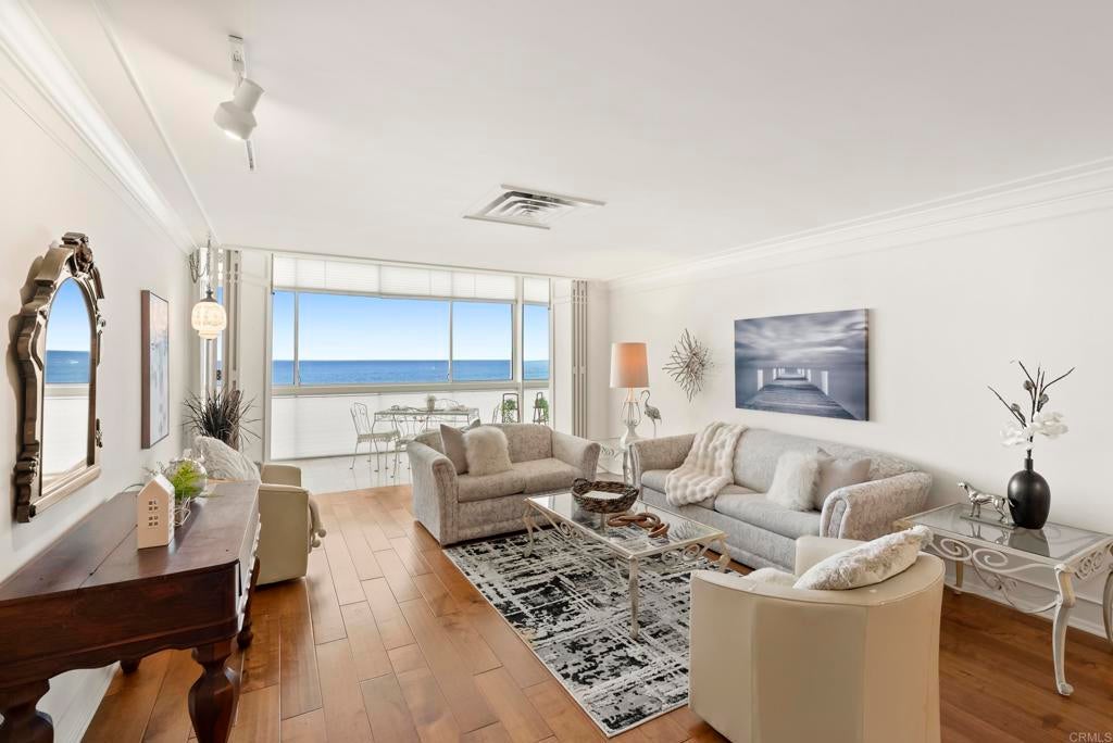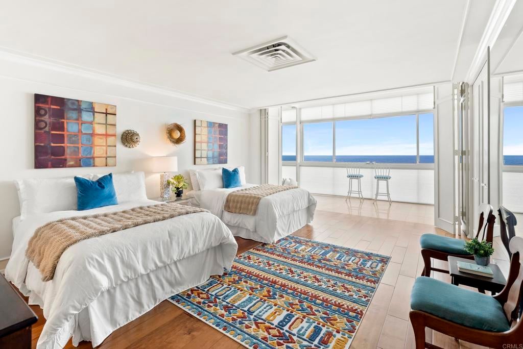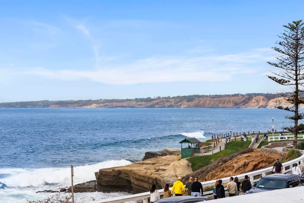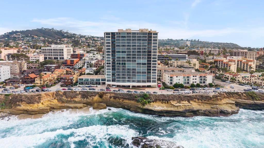Craving a front row seat to the coastline? This La Jolla waterfront gem puts the entire Pacific on display. Experience the beauty of oceanfront living perched above the iconic La Jolla Cove, where sweeping panoramic views stretch up the coastline and every evening brings a spectacular sunset. Perfectly situated in the heart of the Village, this residence combines coastal serenity with unmatched convenience. This fourth floor, beautifully appointed one-bedroom, one-bath condominium features in-unit laundry, and the comfort of a concierge building. Resort-style amenities include a sparkling pool and spa, fitness center, library, and a billiard room. This home offers both luxury and livability. Step outside and stroll to the beach, boutique shops, world-class restaurants, museums, and scenic parks—everything La Jolla has to offer is just steps away. Listing Price is below recent appraisal price. Condo can be converted to a 2 bedroom.