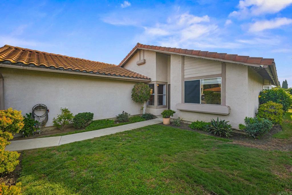 Welcome to this 3-bedroom, 2-bathroom single-level home in the highly desirable Murray Mission community. Offering a spacious ranch-style layout, this property features vaulted ceilings, recessed lighting, air conditioning, solar, and a cozy fireplace that creates a warm and inviting atmosphere. Wood plank flooring flows throughout the main living areas, complemented by a stylish shiplap accent wall for added charm and character. Enjoy expansive outdoor living with a large, lushly landscaped front, back, and side yard—perfect for entertaining, gardening, or simply relaxing in your own private retreat. A convenient 2-car garage provides ample storage and parking. Residents of Murray Mission enjoy fantastic community amenities including a sparkling pool and spa, beautifully maintained greenbelts, walking trails, and front yard landscaping services. The location is unbeatable—walking distance to the neighborhood park, local schools, shops, and restaurants, with quick access to major freeways and just minutes to the beach. This is North County living at its best—single-level comfort, modern upgrades, a vibrant community, and an ideal Oceanside location.