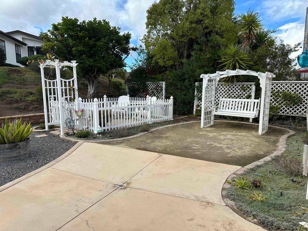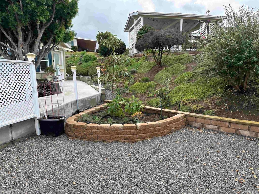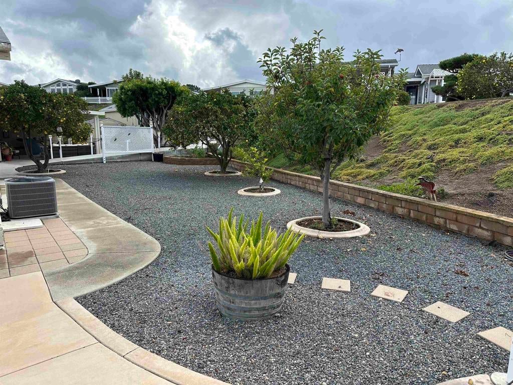 Beautifully remodeled 2 bedroom, 2 bath home with a large driveway and a large backyard. Located in beautiful Pilgrim Creek Estates, a highly desirable 55+ gated community where you own the land! This lovely home has been extensively remodeled with a newly remodeled kitchen with shaker cabinets, stainless steel appliances and beautiful counters. Both bathrooms have been remodeled with a large shower in the master bath and a jacuzzi tub. Other upgrades include new interior doors and ceiling fans and dual pane windows throughout. Washer, dryer, refrigerator and most of the furniture is included including the 70” wall mounted tv in the living room. French doors lead to an enclosed porch that can be used as a craft room, office, man cave or extra bedroom. Plenty of parking with an extra long driveway with a two car garage leading to a beautiful backyard with a swing and sitting area and low maintenance yard with orange, apple and lime trees. Close to all shopping and dining and a short drive to beaches and harbor. Pilgrim Creek Estates is a beautifully landscaped community that offers many amenities including a clubhouse with a full kitchen, billiard tables, fitness center, heated pool, jacuzzi and free RV parking. Low HOA fees of $373 per month includes water, trash and sewer fees.