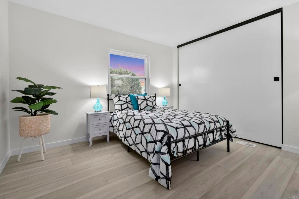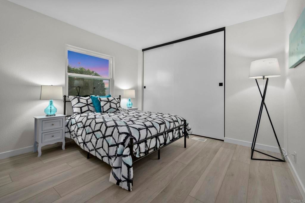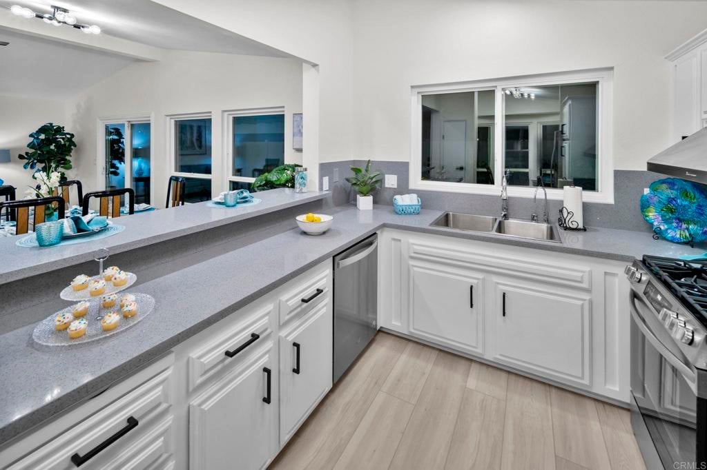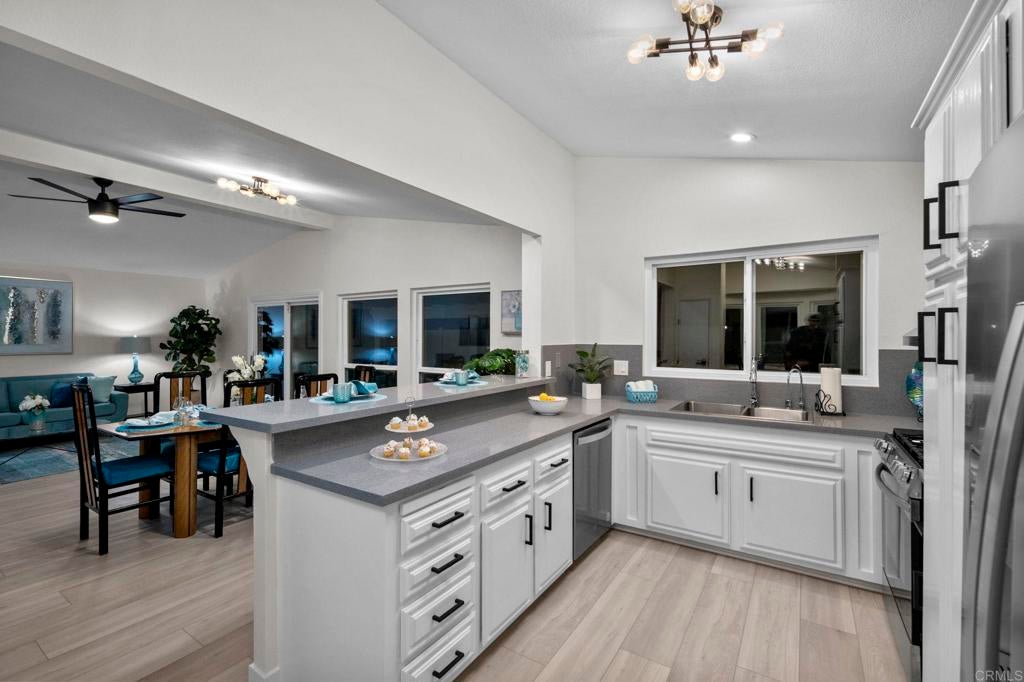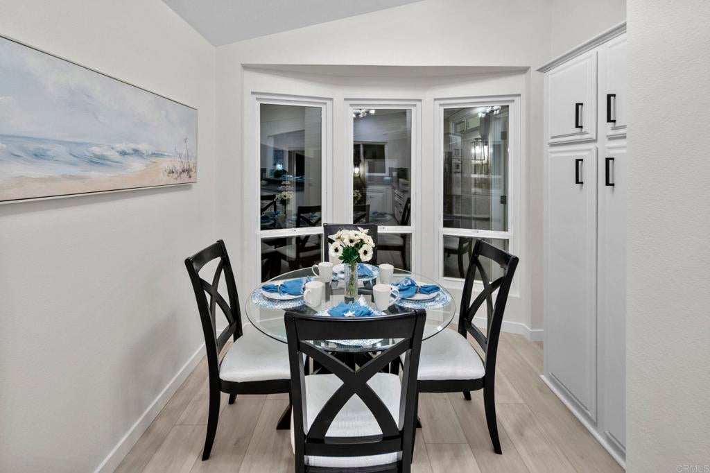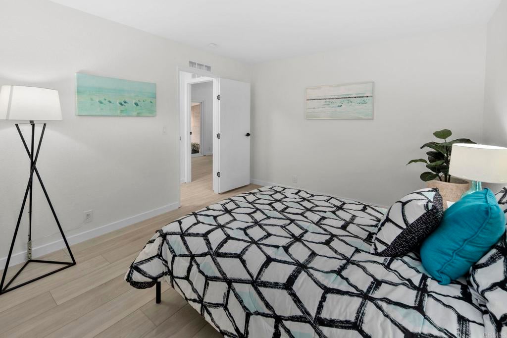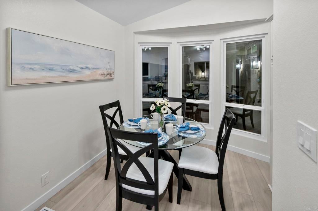 Beautifully Revitalized, Light & Bright 2-Bed/2-Bath Home in 55+ Gated Community — YOU OWN THE LAND! Welcome to this fresh and modern 1,400 sq. ft. home nestled in a desirable 55+ gated community, just 8 miles from the beautiful Carlsbad beaches. Enjoy cool coastal breezes, a low HOA of only $199/month, and the rare benefit of owning the land. Step inside to discover an airy open-concept floor-plan with vaulted ceilings, designed for seamless indoor/outdoor living on an oversized lot. The spacious living and dining areas offer the perfect setting for both everyday comfort and entertaining. The revitalized kitchen features granite countertops, freshly painted cabinetry, and all-new stainless steel appliances, including a double-door refrigerator, 5-burner gas stove, and dishwasher. Start your mornings in the charming breakfast nook with a bay window or at the convenient kitchen bar. The beautiful primary suite offers a walk-in closet with mirrored doors and a private patio entrance. The adjacent updated primary bath includes a soaking tub, separate shower, and abundant storage. The second bedroom is bright, inviting, and perfect for guests or hobbies. Additional Upgrades & Features: • Freshly painted inside and out • All-new wide plank LVP flooring • New modern lighting throughout • Custom front door with contemporary handle set • Dual-pane windows with locks • Updated exterior lighting • Two large covered patios offering privacy, quiet enjoyment, and ideal spaces for relaxing or entertaining • Peace of mind with nighttime security • Active community lifestyle with dinners, parties & games Residents also enjoy resort-style amenities, including a sparkling pool, relaxing spa, and a remodeled clubhouse perfect for gatherings and events. Conveniently located near shopping, restaurants, and major freeways—with Kaiser Hospital just 10 minutes away and Palomar Hospital only 16 minutes. Easy access to Hwy 78 completes the package—this home truly has it all!