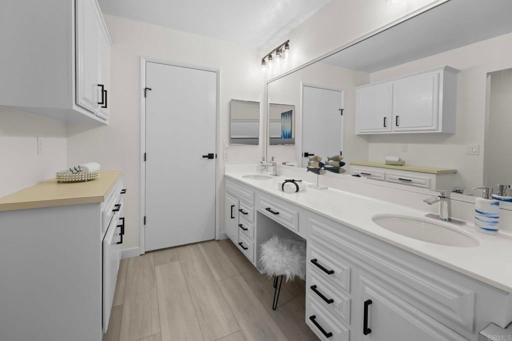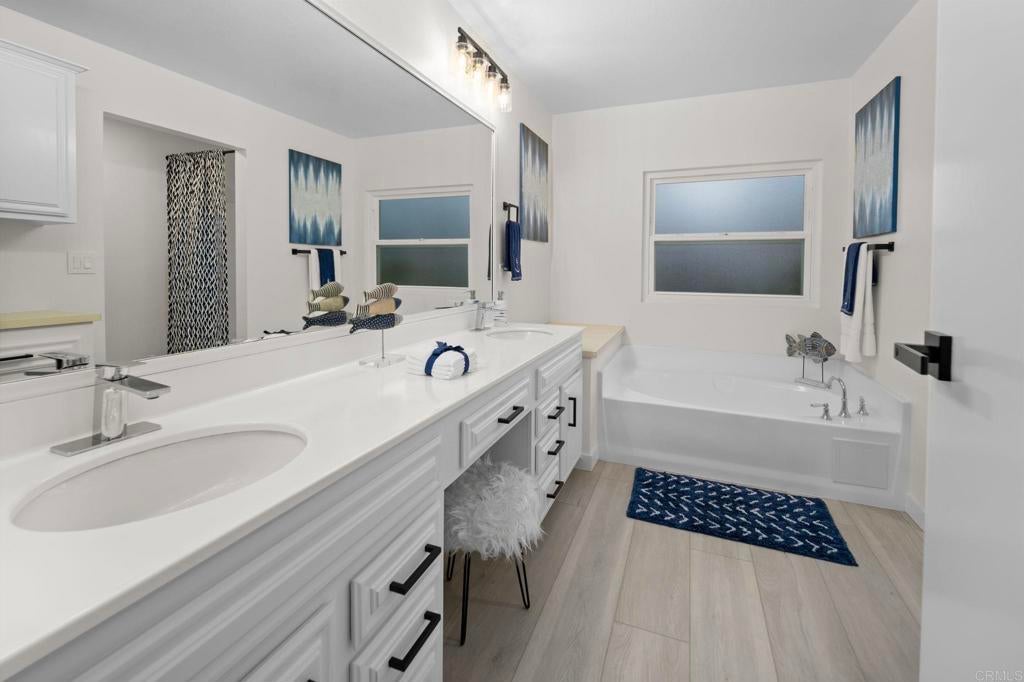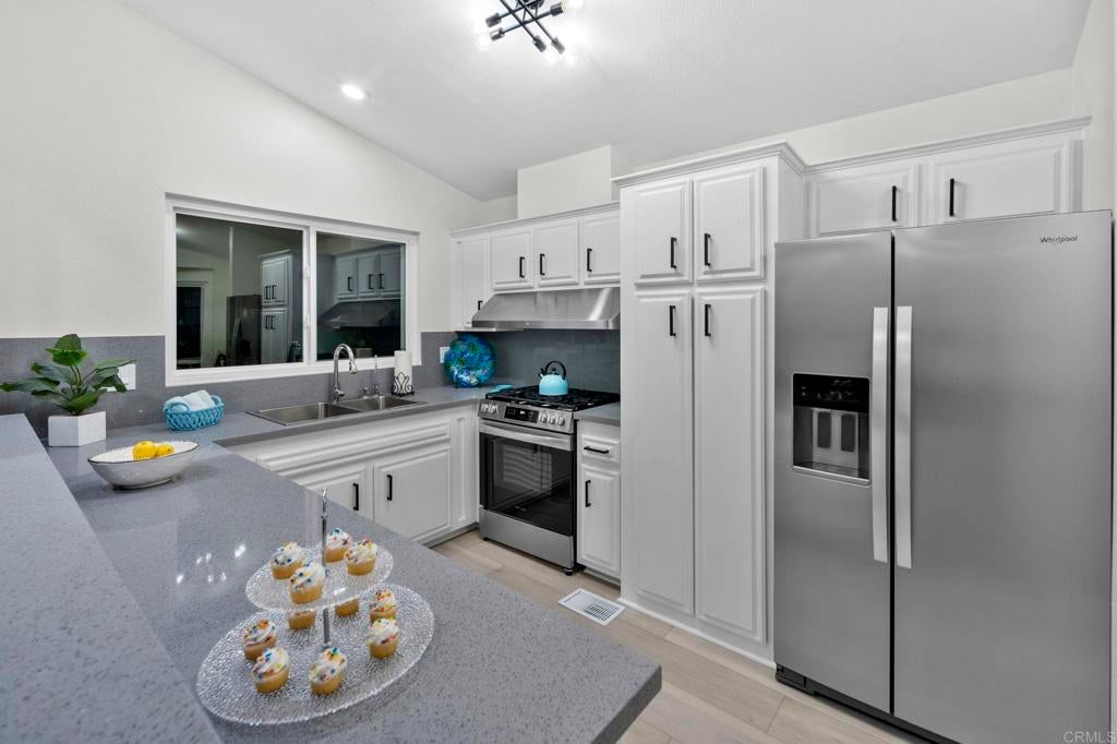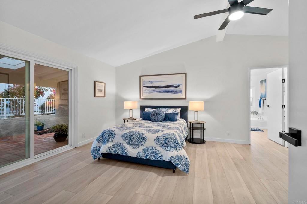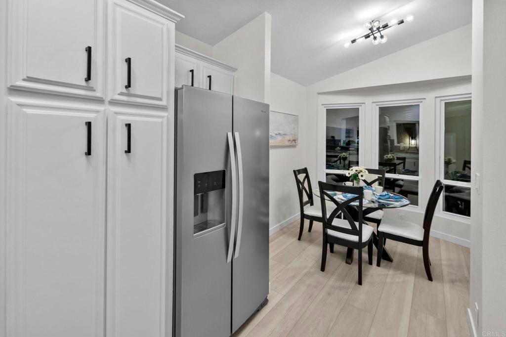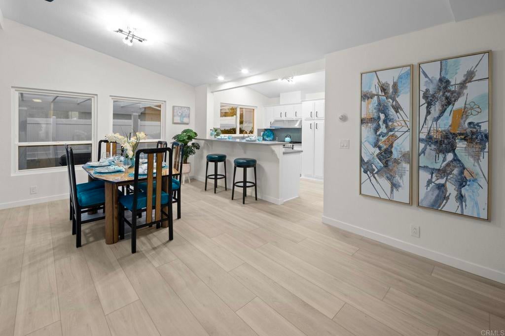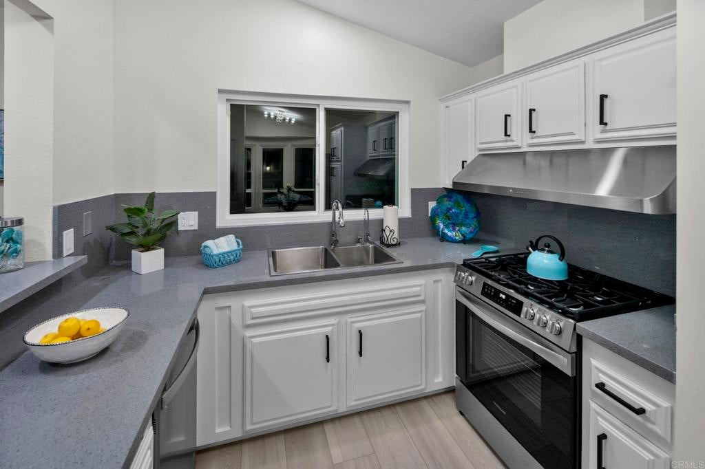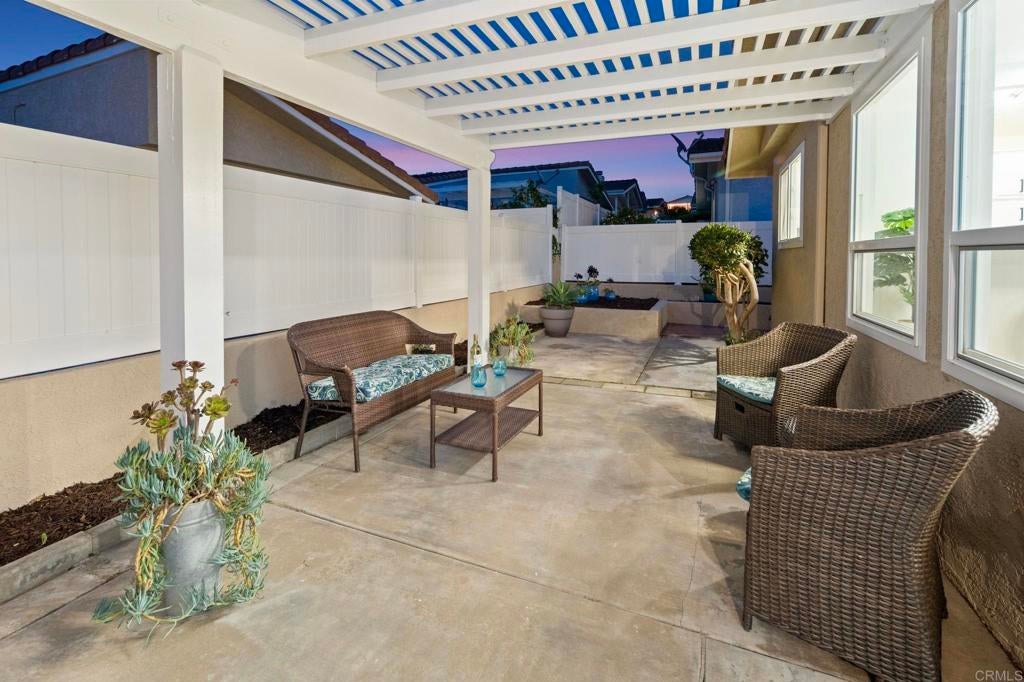 Beautifully Revitalized, Light & Bright 2-Bed/2-Bath Home in 55+ Gated Community — YOU OWN THE LAND! Welcome to this fresh and modern 1,400 sq. ft. home nestled in a desirable 55+ gated community, just 8 miles from the beautiful Carlsbad beaches. Enjoy cool coastal breezes, a low HOA of only $199/month, and the rare benefit of owning the land. Step inside to discover an airy open-concept floor-plan with vaulted ceilings, designed for seamless indoor/outdoor living on an oversized lot. The spacious living and dining areas offer the perfect setting for both everyday comfort and entertaining. The revitalized kitchen features granite countertops, freshly painted cabinetry, and all-new stainless steel appliances, including a double-door refrigerator, 5-burner gas stove, and dishwasher. Start your mornings in the charming breakfast nook with a bay window or at the convenient kitchen bar. The beautiful primary suite offers a walk-in closet with mirrored doors and a private patio entrance. The adjacent updated primary bath includes a soaking tub, separate shower, and abundant storage. The second bedroom is bright, inviting, and perfect for guests or hobbies. Additional Upgrades & Features: • Freshly painted inside and out • All-new wide plank LVP flooring • New modern lighting throughout • Custom front door with contemporary handle set • Dual-pane windows with locks • Updated exterior lighting • Two large covered patios offering privacy, quiet enjoyment, and ideal spaces for relaxing or entertaining • Peace of mind with nighttime security • Active community lifestyle with dinners, parties & games Residents also enjoy resort-style amenities, including a sparkling pool, relaxing spa, and a remodeled clubhouse perfect for gatherings and events. Conveniently located near shopping, restaurants, and major freeways—with Kaiser Hospital just 10 minutes away and Palomar Hospital only 16 minutes. Easy access to Hwy 78 completes the package—this home truly has it all!