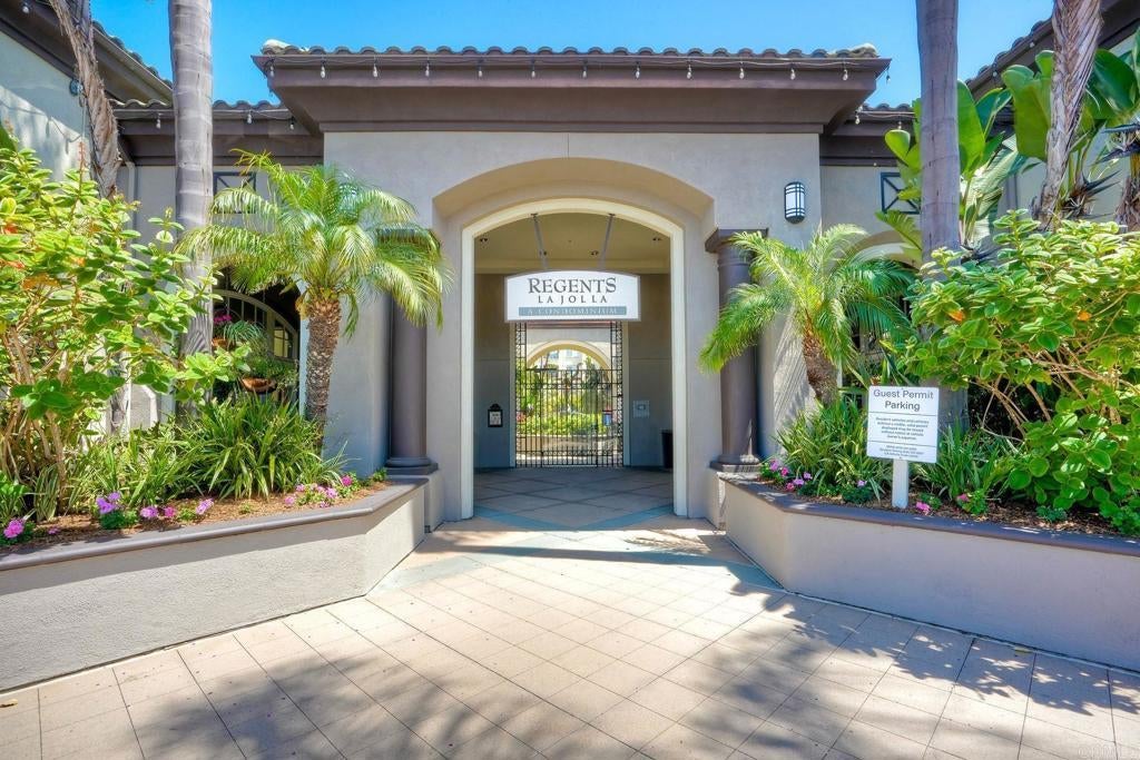 Stunningly updated ground-floor 2-bed / 2-bath condo at Regents La Jolla – move-in ready and perfectly positioned just inside the main gate with concierge at your doorstep. Completely refreshed in 2024 with new luxury vinyl plank flooring, brand-new stainless refrigerator, in-unit full-size washer/dryer, plantation shutters, and ceiling fans throughout. Spacious split-bedroom floor plan offers two true primary suites, each with walk-in closets and en-suite bathrooms for maximum privacy. Open-concept living room flows to a private patio, ideal for morning coffee or evening relaxation. Resort-caliber amenities include 24-hour concierge, expansive clubhouse with theater room, billiards, fully-equipped gym, yoga studio, Olympic-size pool & spa, cabanas, BBQ areas, and manicured tropical grounds. Two tandem parking spaces in the secured garage. Water/trash and common area maintenance covered by HOA. Prime UTC location steps to UCSD, UTC trolley station, Westfield Mall, dining, groceries, and quick access to I-5, I-805 & SR-52. Pets welcome with restrictions. Available now – this one checks every box and won’t last!