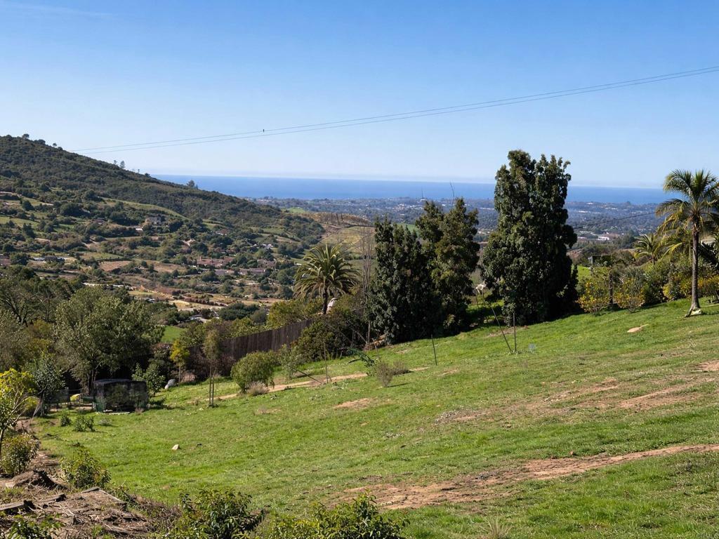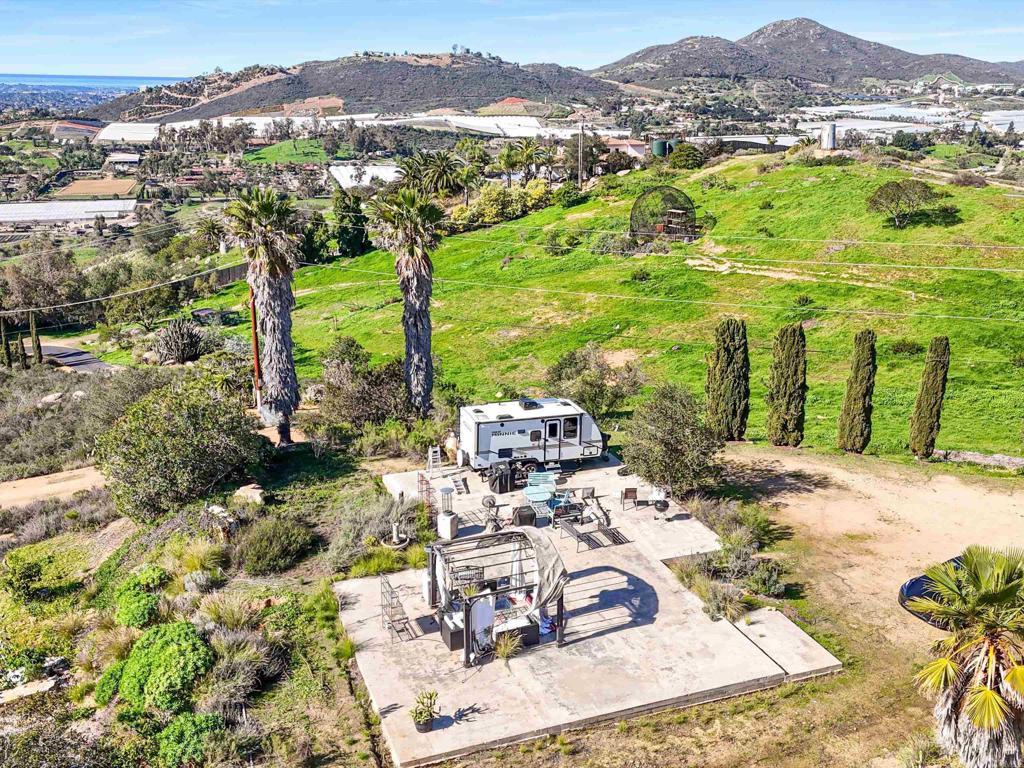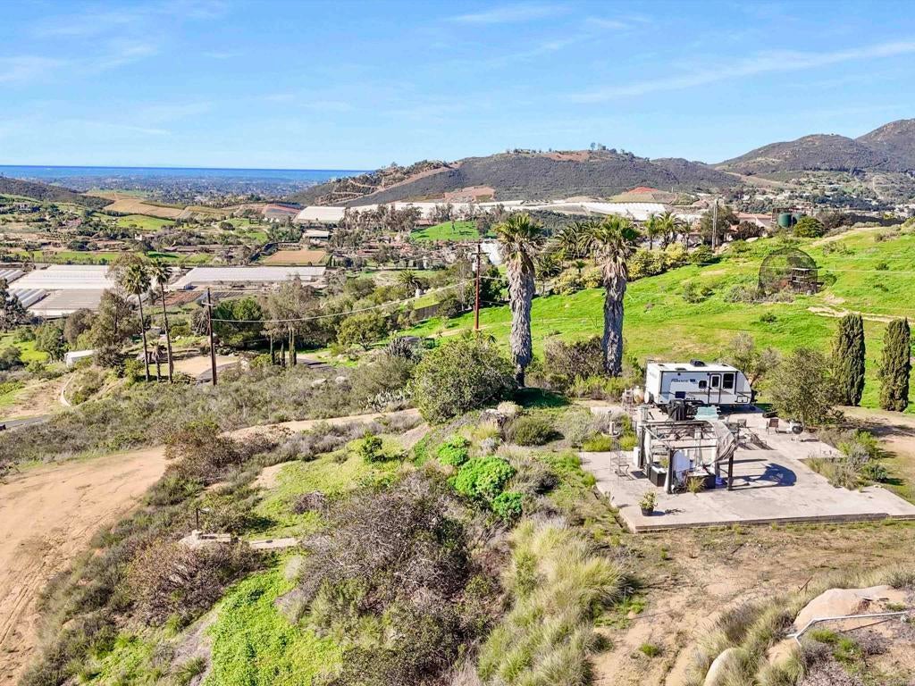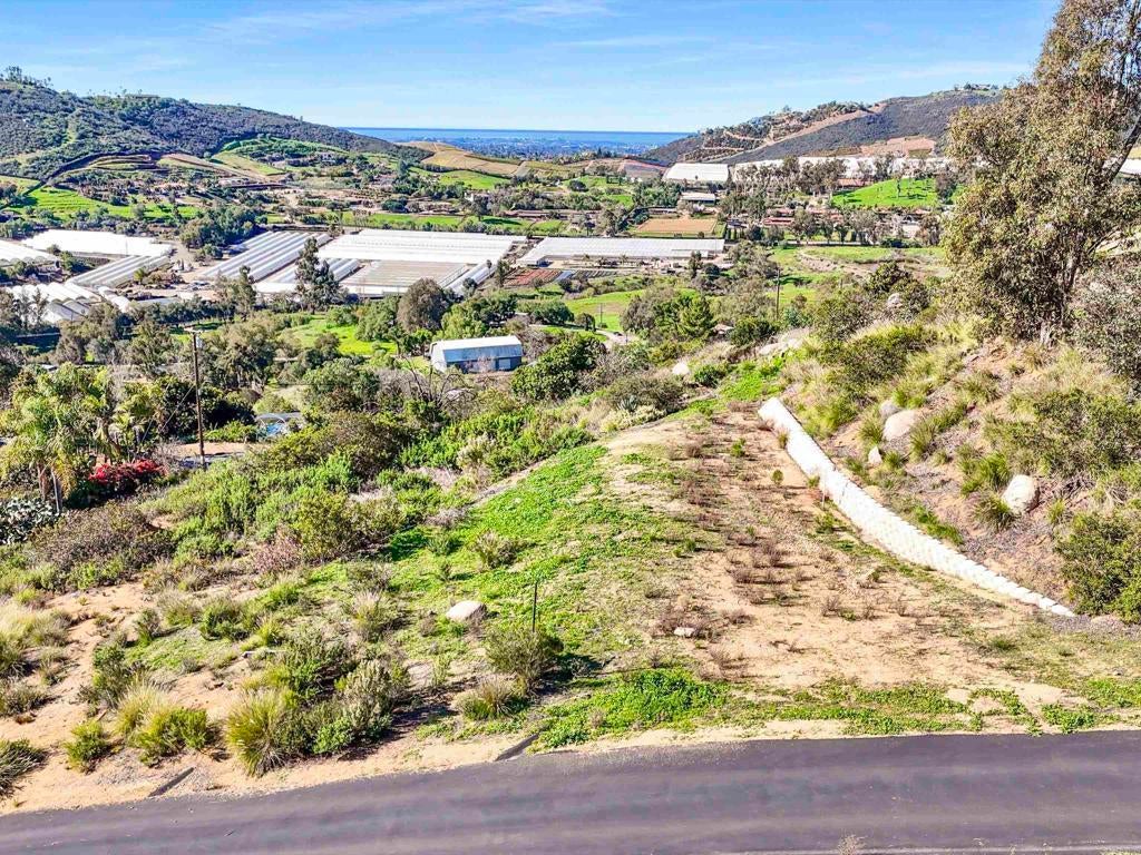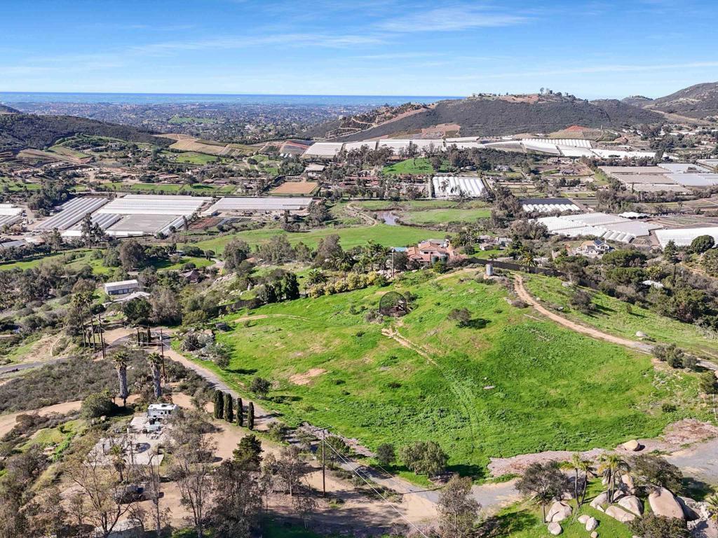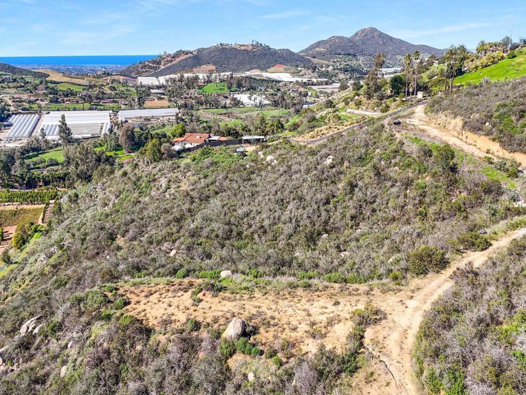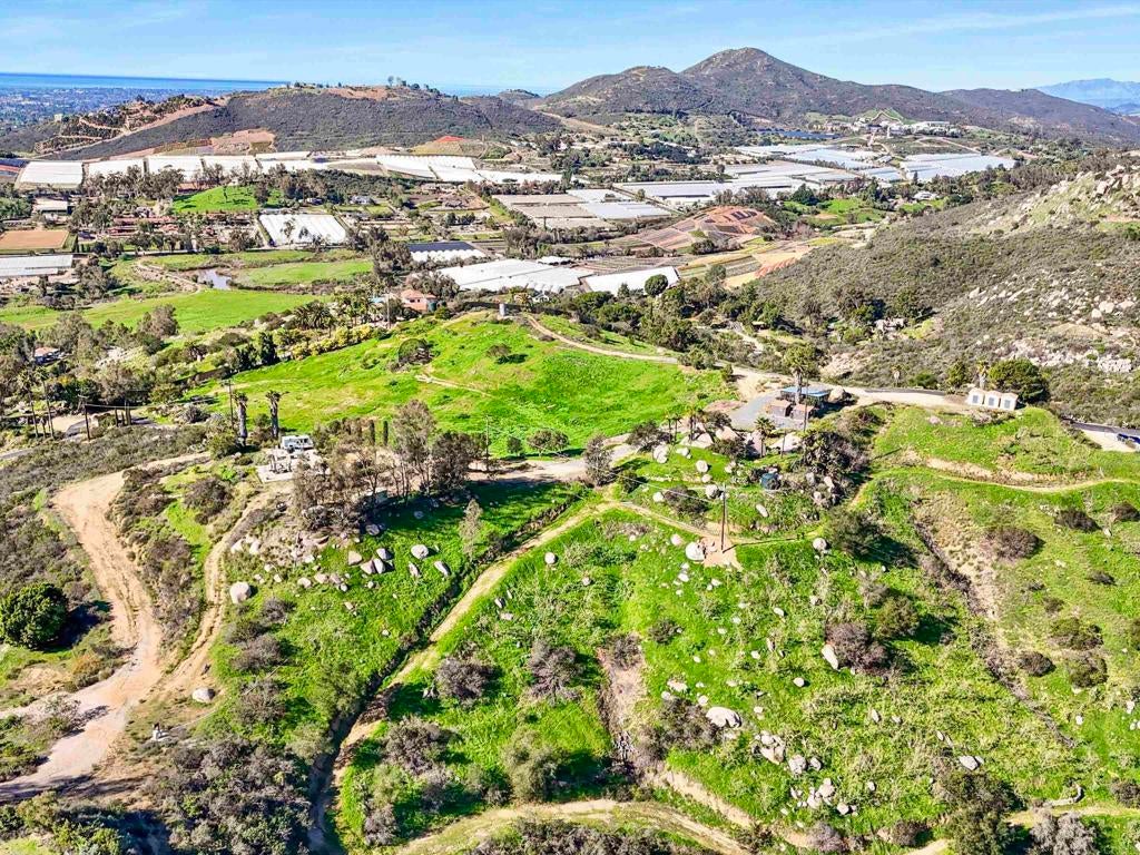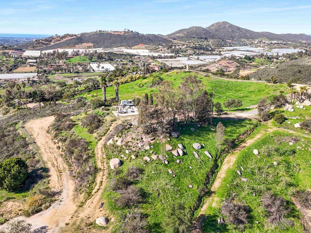 Perched atop the rolling hills of San Marcos, this extraordinary mountaintop property presents a rare chance to own more than 31 acres of ocean-view land with panoramic vistas stretching from the inland valleys to the Pacific. Offering both a 28.72-acre parcel and an additional 3-acre lot, the property is zoned A70 with the sought-after “L” animal designator, allowing for flexible agricultural and residential uses. Set at approximately 1,175 feet in elevation, the land enjoys uninterrupted 360-degree views, remarkable privacy, and exceptional development potential. County guidelines allowing for 4-acre minimum lot splits create the opportunity to build up to seven custom homes, opening the door for developers, multigenerational buyers, homesteaders, or investors seeking a long-term land hold in one of San Marcos’ most desirable growth corridors. More than $1 million in infrastructure has already been completed, including a producing private well with a booster pump, two water meters, two electric meters, recently paved access roads, three possible entry points, and multiple flat building pads oriented to capture sweeping views. The property is surrounded by upscale estates, boutique agricultural operations, and peaceful rural retreats, making it a prime location for luxury development, a private family compound, or a self-sustaining homestead.