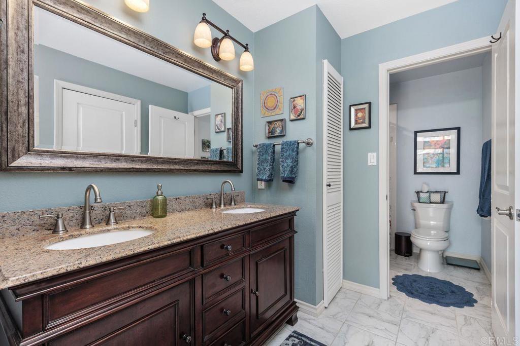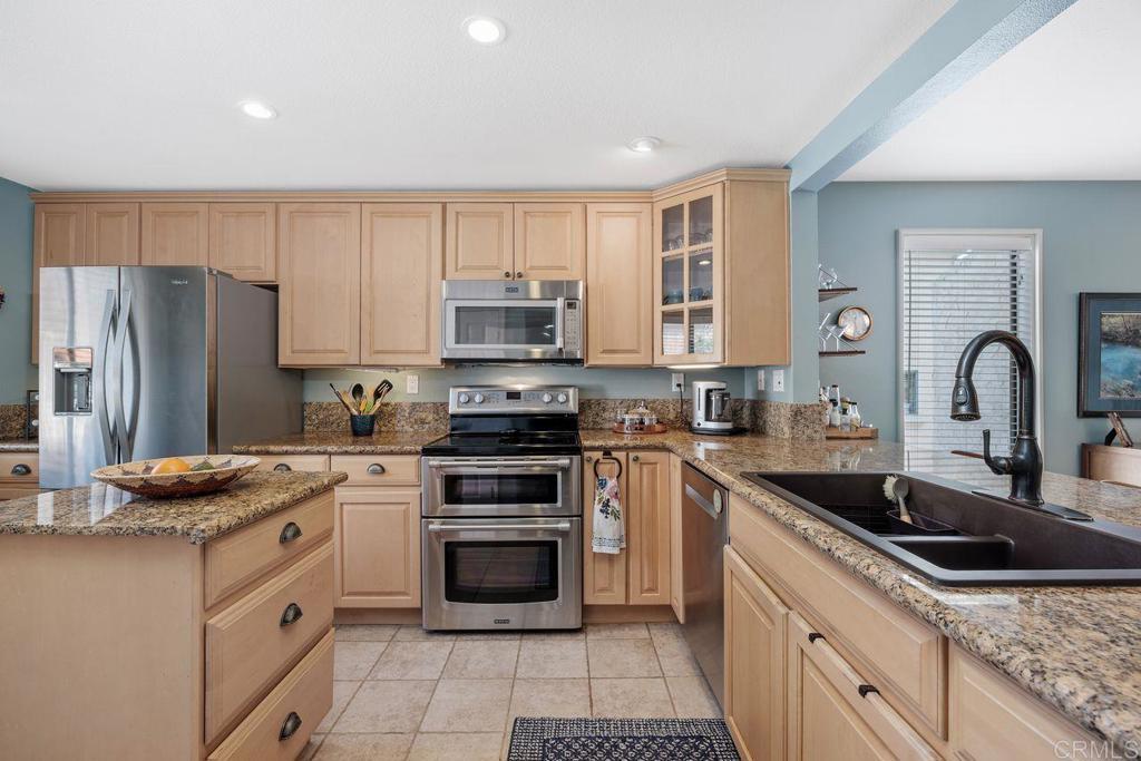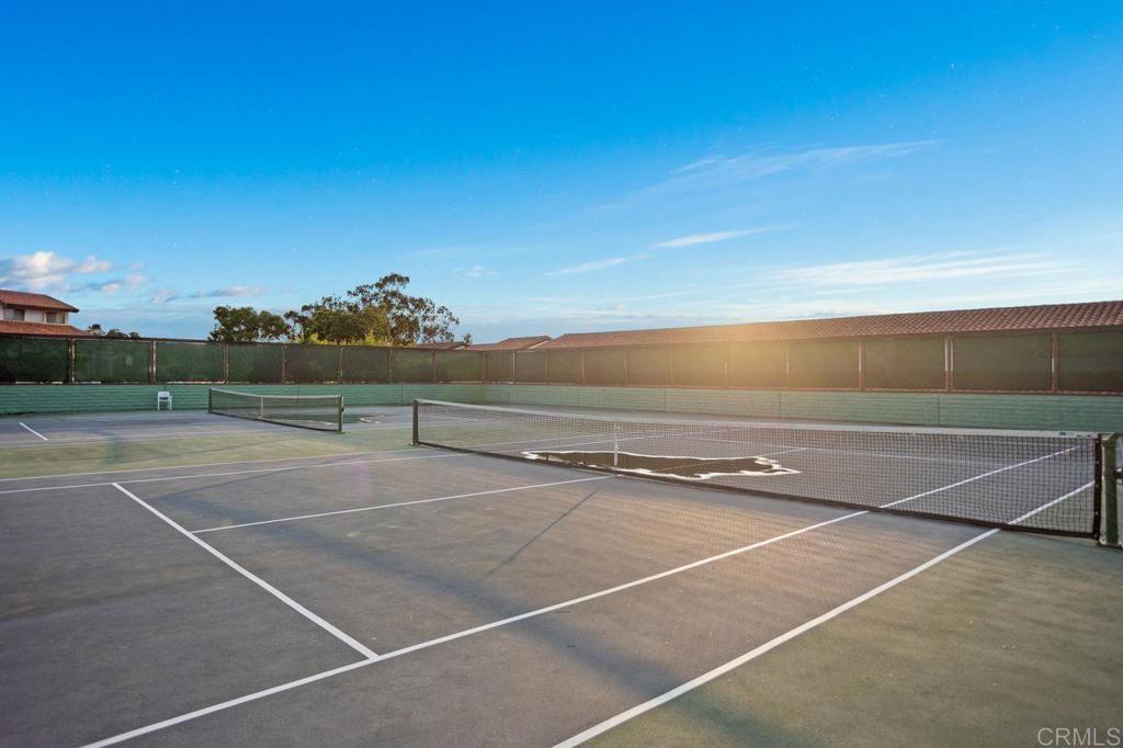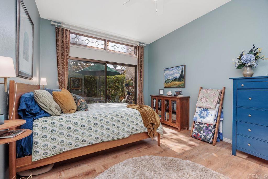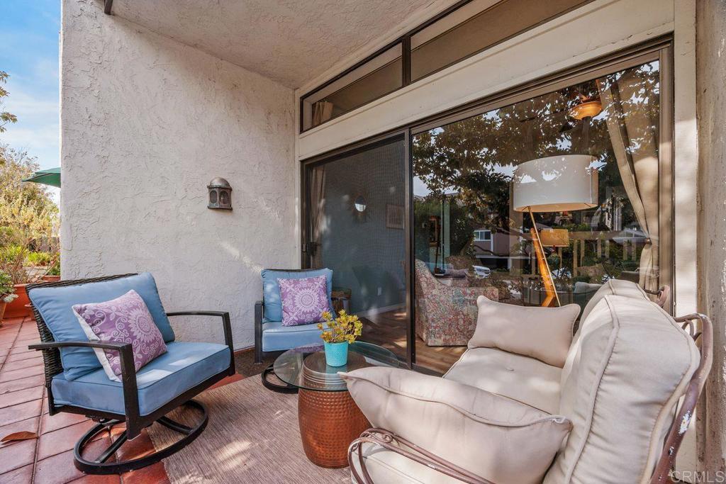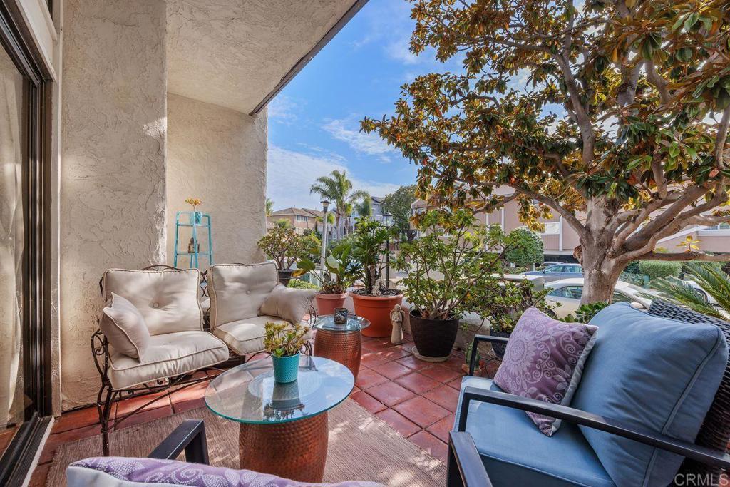 This turnkey 1-bedroom corner end unit on a quiet cul-de-sac is filled with natural light thanks to its abundance of windows. Thoughtfully upgraded throughout, the home features a spacious kitchen with a center island, gorgeous natural granite countertops, ceramic tile flooring, a rich brown quartz double-bowl sink, stainless steel appliances (including a double oven and refrigerator), a dedicated laundry closet with washer and dryer, ample counter space, and a large picture window. The pass-through bar opens to a generous dining area and a step-down living room appointed with a cozy fireplace, ceiling fan, luxury vinyl wood-plank flooring, recessed lighting, and sliding doors leading to a private patio. A custom barn door introduces the ensuite bedroom, which offers a ceiling fan and its own sliding doors to a large private patio—ideal for morning coffee or a quiet afternoon retreat. The ensuite bath includes a double vanity, tub/shower combo, and a spacious walk-in closet. A separate guest powder room adds additional convenience. With three outdoor patio spaces, you can truly embrace the quintessential SoCal indoor-outdoor lifestyle. Additional highlights include gated underground parking with a reserved space and storage. This Mediterranean-inspired community sits on the edge of the world-famous La Costa Resort, just 2.5 miles from the beach and moments from popular restaurants, shops, movie theaters, grocery stores, and direct access to I-5. HOA dues include water, trash, sewer, exterior maintenance, landscaping, and access to resort-style amenities—pool, spa, sauna, and tennis courts.