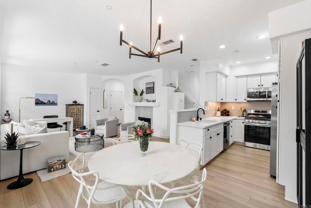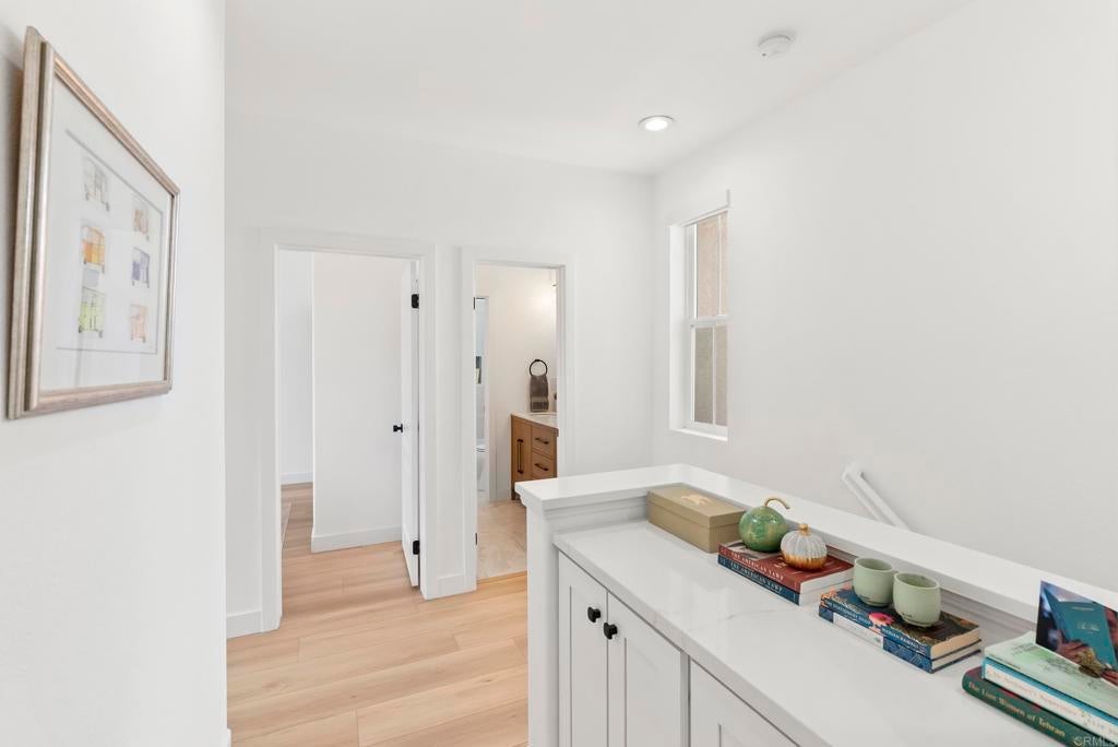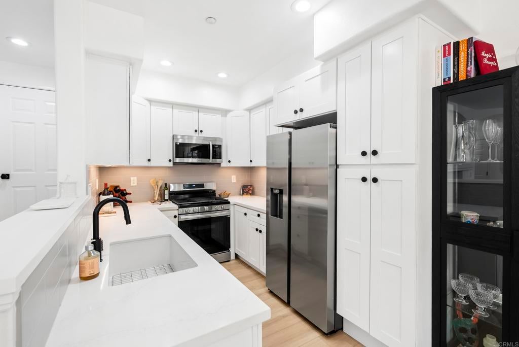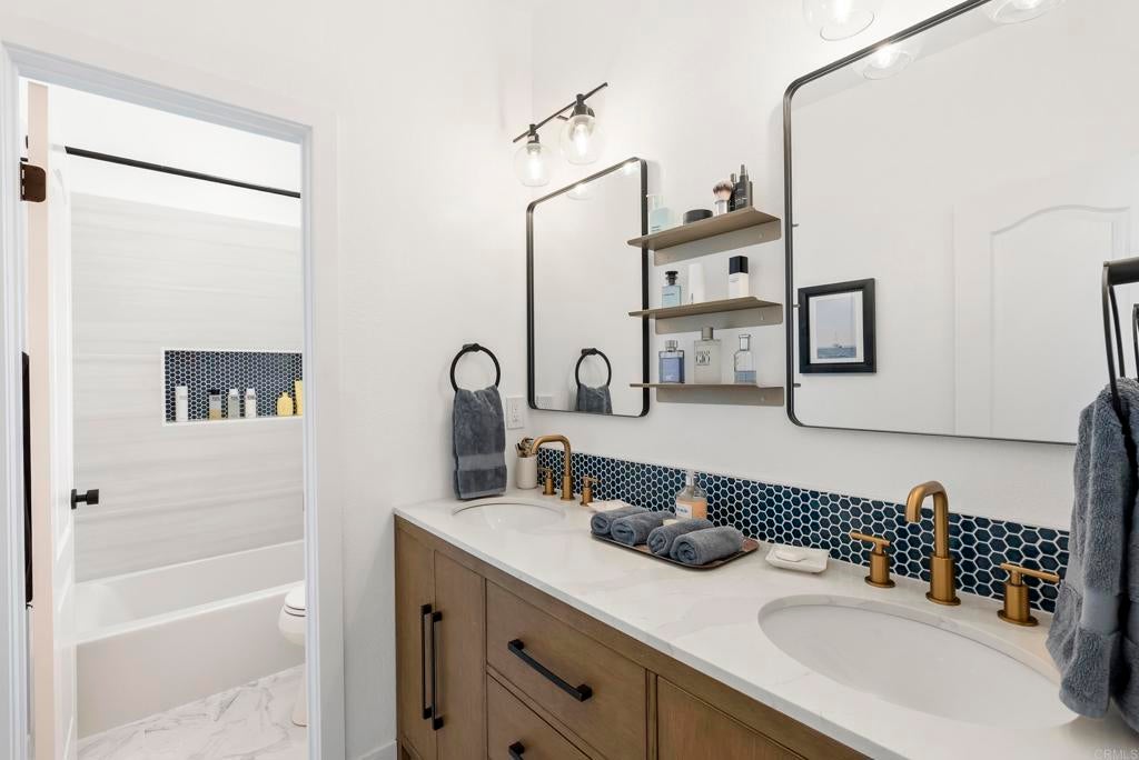 Welcome to Portico at Rancho Carrillo—a highly upgraded, turn-key home in one of Carlsbad’s most desirable gated communities! This stylish 3-bed, 2.5-bath home has been completely renovated from top to bottom and is truly move-in ready. Step inside and fall in love with the bright, open floor plan—perfect for entertaining or relaxing. The modern kitchen features stainless steel appliances, quartz countertops, chic cabinetry, and under-cabinet lighting that gives it that designer touch. Enjoy the convenience of a private yard, central AC, and an attached split 2-car garage. Upstairs, all three bedrooms offer comfort and privacy and have new installed California Closets organizational solutions. The spacious primary suite feels like a boutique hotel with a walk-in tile shower, dual-sink vanity, elegant lighting, and a spacious walk-in closet. The secondary bedrooms share a beautifully updated bathroom with a dual vanity—ideal for guests, kids, or roommates. Additional highlights include new upstairs window blinds, VA approved and low HOA. Homes like this don’t last—especially in Rancho Carrillo. See it. Love it. Own it. Living in Rancho Carrillo means access to incredible resort-style amenities: two sparkling community pools, one within Portico and the other at the Rancho Carrillo Swim Center, walking and running trails, and close proximity to top-rated schools, Omni La Costa, Alga Norte Park, Leo Carrillo Ranch, shopping, dining, golf, and Carlsbad’s amazing beaches. Discover why this upgraded, modern home is the perfect blend of style, convenience, and Carlsbad coastal living!