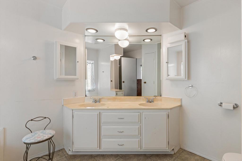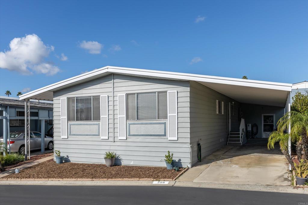 2 bed / 2 bath located on an elevated VIEW lot in a 55+ rent controlled park. No neighbors across from you means no obstructions in your beautiful panoramic views of the hills and valleys to the East, the snow caps to the North East, and the morning sunrise! Interior is very light and bright. The spacious Kitchen offers plenty of space for a breakfast nook. 3 ceiling fans plus central A/C. The Primary Bathroom offers 2 sinks and a separate tub and shower. The spacious Guest Bedroom also has it's on ensuite Bathroom. All appliances convey and many furniture pieces are available to be included as well. An enclosed porch offers extra living space or storage. There is a private patio behind the home and a large storage shed. Palomar Estates East is a very active and social 5* community - check out the photos to see some of the amenities this community has to offer! Convenient to shopping, restaurants, Lake San Marcos, two golf courses at Lake San Marcos, another golf course nearby off Twin Oaks, entertainment, lots of parks and trails, the San Marcos Senior Center, and just a short 8 mile drive to Carlsbad beaches! Monthly space rent is only $658.32 and is under rent control!