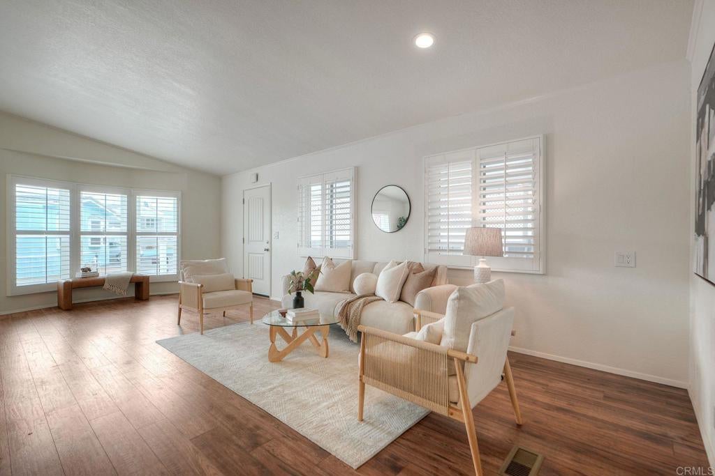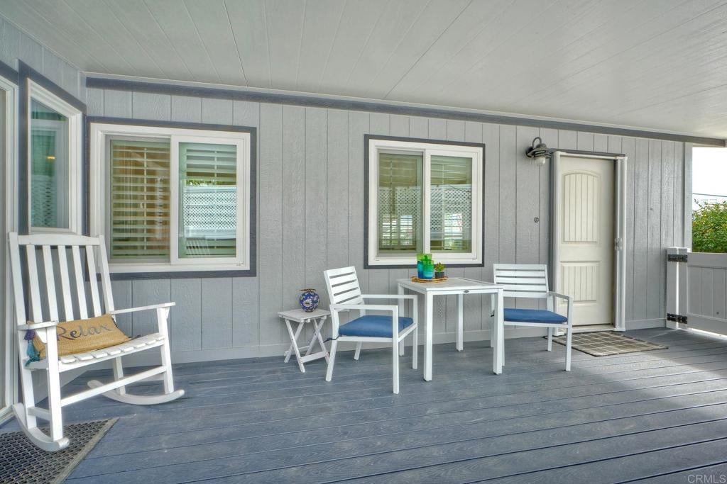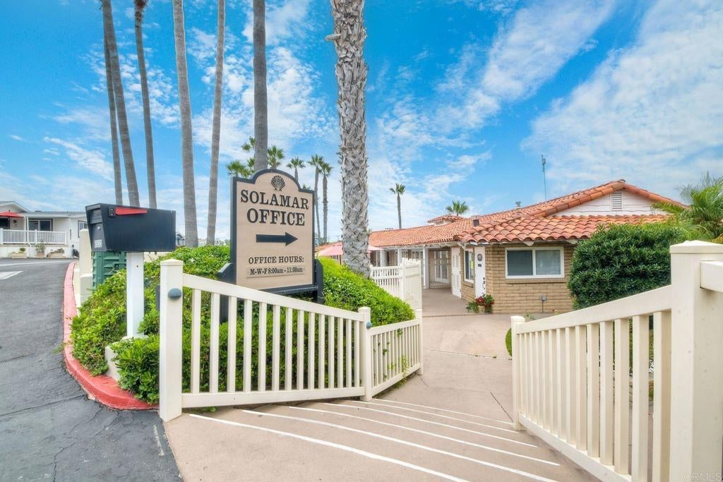 Welcome to your new Carlsbad beach home! This coastal cutie features a bright and airy open floor plan with soaring ceilings and skylights that fill the space with natural light. The remodeled kitchen is spacious and seamlessly connects to the living and dining areas, offering generous quartz countertops, shaker cabinetry, a porcelain farmhouse sink, and sleek stainless-steel appliances. The primary suite is roomy and inviting, complete with high ceilings and an impressively large ensuite bath. The secondary bedroom and bath provide a perfect setup for guests. A dedicated office offers excellent flexibility—ideal as a workspace, art studio, or workout room. Enjoy your laundry room in the house for total ease. Step outside to a peaceful trex deck patio and outdoor area made for unwinding and enjoying spectacular sunsets. Vinyl fencing perfectly maintains your privacy. An attached carport adds convenience, while a detached shed is perfect for storing bikes and extra gear. This home is a perfect fit for full-time living or a great second home. Catch the wave at Solamar. The Solamar community offers exceptional amenities, including a heated saltwater pool, jacuzzi, pickleball court, clubhouse, library, car-wash station, and more. HOA fees are only $347, including cable, sewer & trash.--this is a Land Owned community--there is NO Space Rent Welcome home to coastal living at its finest.