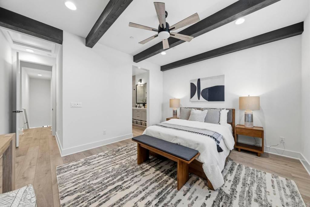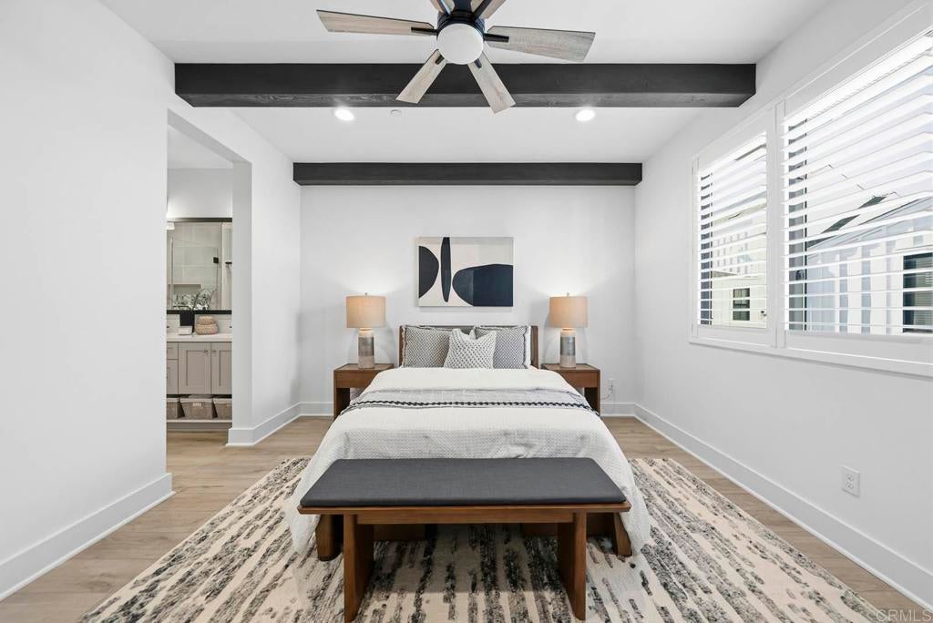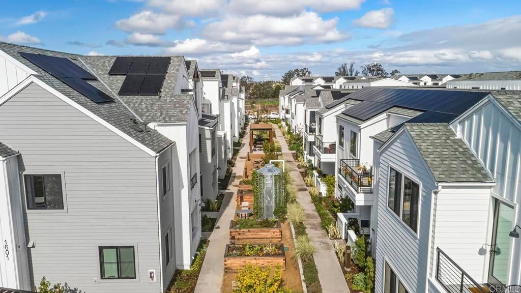 Welcome to San Remo, a townhome where every detail is intentional. This beautifully upgraded corner-location townhome lives like a modern sanctuary, offering elevated finishes and stylish design touches that feel more boutique than builder-basic. Abundant natural light pours in from multiple sides, bringing brightness to every room. A private attached car garage with direct interior entry adds ease and accessibility to daily life. The open living space flows with warmth and function, anchored by designer flooring, curated lighting, and thoughtful upgrades that elevate everyday living. Retreat upstairs to a quiet, airy bedroom level that feels peaceful and grounded. Every finish… every room… every moment has been upgraded to support a lifestyle of ease. Designer upgrades throughout (not builder-standard). Open concept living + elevated lighting & flooring. A neighborhood built around fresh air, community gardens, and slow intentional living. Miles of trails, a working farm, future farm-to-table spaces, and a quiet coastal hillside above Encinitas—designed for people who choose peace on purpose.