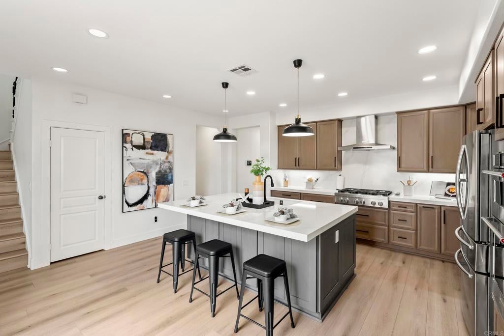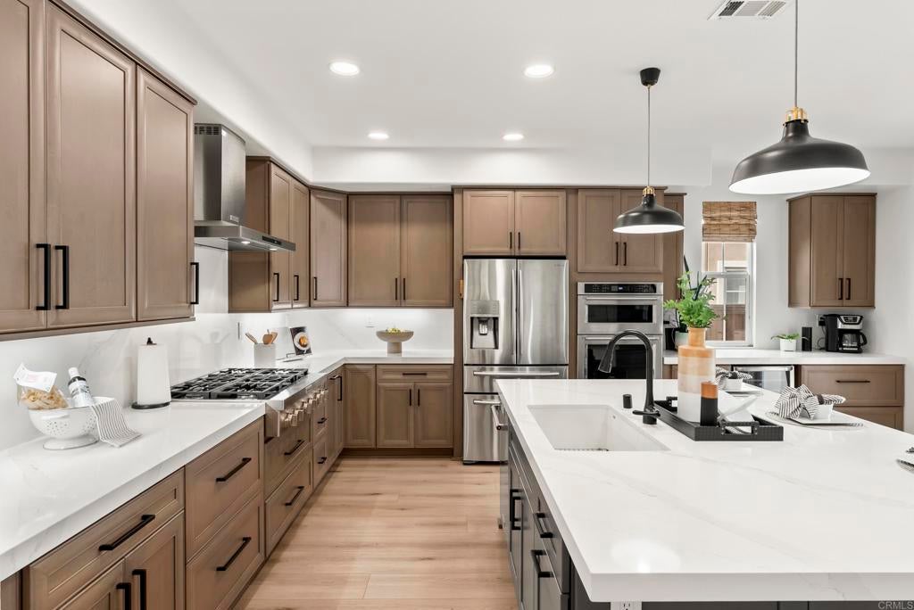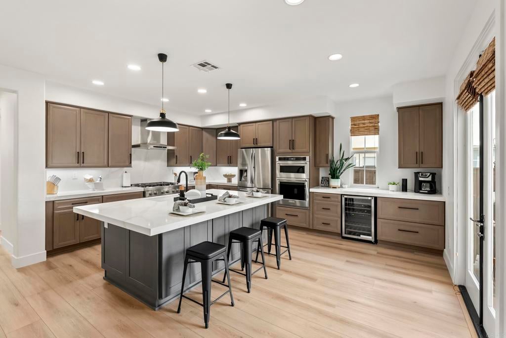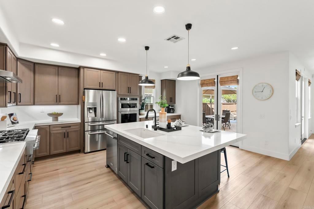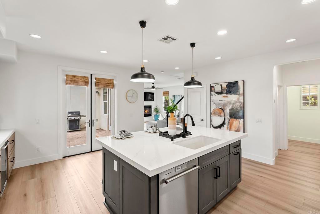 LIVE THE BRESSI RANCH DREAM! Welcome to your dream home in one of Carlsbad’s most coveted neighborhoods, Bressi Ranch, where timeless charm meets modern convenience. Step inside to 2,476 sq. ft. of bright, airy living space with expansive windows, and rich LVP floors that flow seamlessly throughout the main level. The heart of the home is the newly renovated chef’s kitchen, featuring an oversized island, sleek quartz countertops, designer lighting, and on-trend cabinetry, the perfect backdrop for both family gatherings and elegant entertaining. Enjoy a flexible floor plan offering formal dining, a spacious den or easy conversion to 4th bedroom, and a cozy family room that provides access through French doors to your private outdoor retreat. Upstairs, you will find a serene primary suite, spa inspired bath and additional spacious bedrooms. Outside your doorstep, Bressi Ranch has it all offering a lifestyle like no other. Stroll to the village offering; boutique shops, restaurants, and favorite local spots like Bird Rock Coffee and Trader Joe’s. Spend weekends at the community pool, explore neighborhood parks, or relax at nearby Carlsbad beaches, world-class golf courses. If you’ve been waiting for the perfect home in the perfect location, this is it. Come see why life in Bressi Ranch is so easy to fall in love with!
