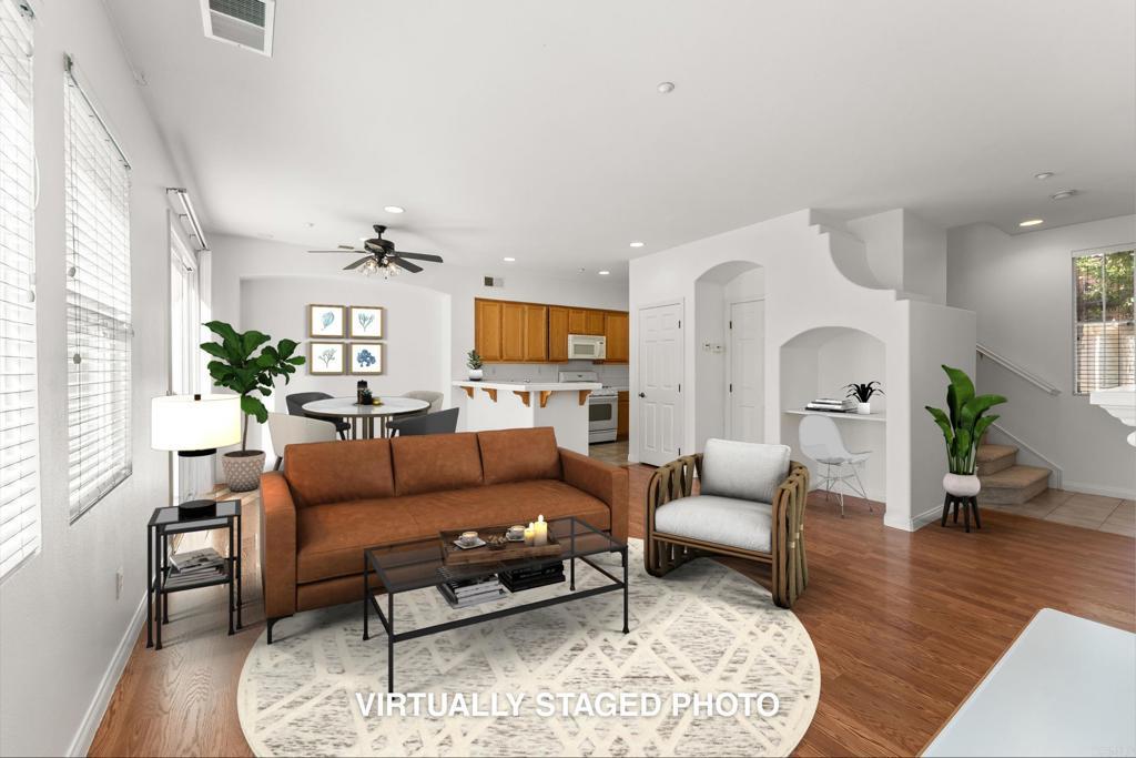 Best priced townhome with a yard on the market in San Elijo Hills! Welcome to a lifestyle of comfort and convenience with this delightful townhome, featuring its own private backyard in the gated community of Westridge! This light-filled and inviting home is move-in ready with a freshly painted interior and newly installed carpet upstairs. The spacious open-concept kitchen and cozy fireplace set the stage for everyday living and relaxation. Upstairs you'll find two bedrooms each offering their own ensuite bathrooms. Situated in the desirable Westridge gated community, where you can enjoy access to a community pool and being conveniently close to sought after schools (zoned for San Elijo Elementary, San Elijo Middle, and San Marcos High School), parks, hiking trails, and the bustling San Elijo Town Square.