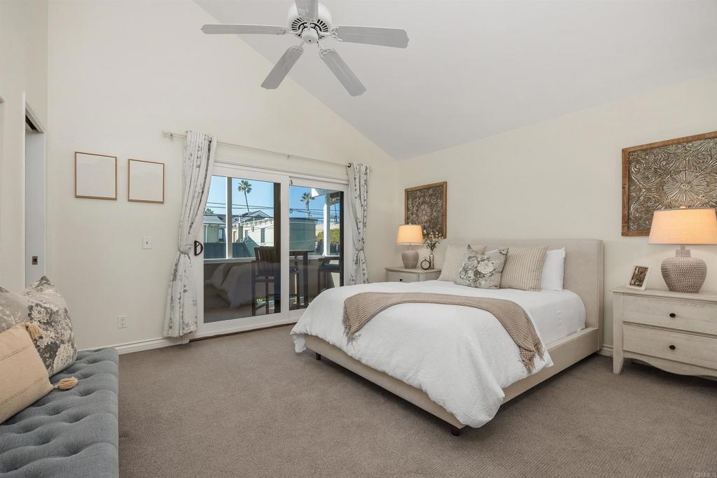 This 3-bedroom, 3-bathroom townhouse offers the ultimate Encinitas lifestyle—just 2 blocks from world-renowned D Street and Moonlight Beaches and 1 block from the vibrant shops, cafés, and restaurants along historic Highway 101! Few homes offer this blend of walkability, privacy, and upgraded living. Despite being just steps from everything, this home feels like a private retreat, with a beautifully maintained patio offering plenty of space for entertaining, as well as a convenient outdoor shower. Inside, the open floor plan features a spacious living room with a fireplace and vaulted wood-plank ceiling, a gourmet kitchen with quartz countertops, walk-in pantry, stainless-steel appliances, and a dining room that opens to a private, low-maintenance patio—ideal for indoor/outdoor living. On the main level, you'll also find a full bathroom and a large laundry room, with washer and dryer included, that leads to the 2-car garage featuring epoxy flooring and ample storage. All three bedrooms are conveniently located upstairs. The primary suite has vaulted ceilings, a walk-in closet, an en-suite bathroom, and a large ocean-view patio. The two additional bedrooms include one with its own walk-out patio and a custom loft—perfect for a play space or creative nook. This home has been meticulously maintained, with high-cost improvements already completed, including a newer kitchen, hot water heater, furnace, soft-water system, and windows. It is situated within the award-winning Encinitas Union and San Dieguito School Districts. With only four units in this efficiently run HOA—and a low maintenance fee of $375/month covering insurance, water, sewer, trash, gardener, and exterior maintenance—this property offers both value and convenience. This is a rare opportunity to enjoy the very best of Encinitas: beach access, urban walkability, convenience, privacy, modern upgrades, and a beautifully-designed home that truly has it all!