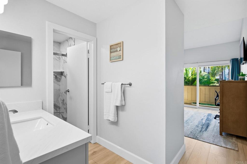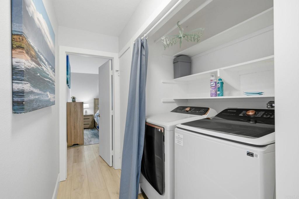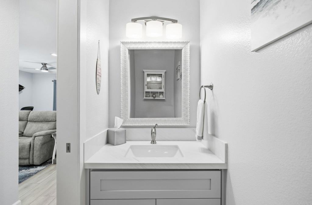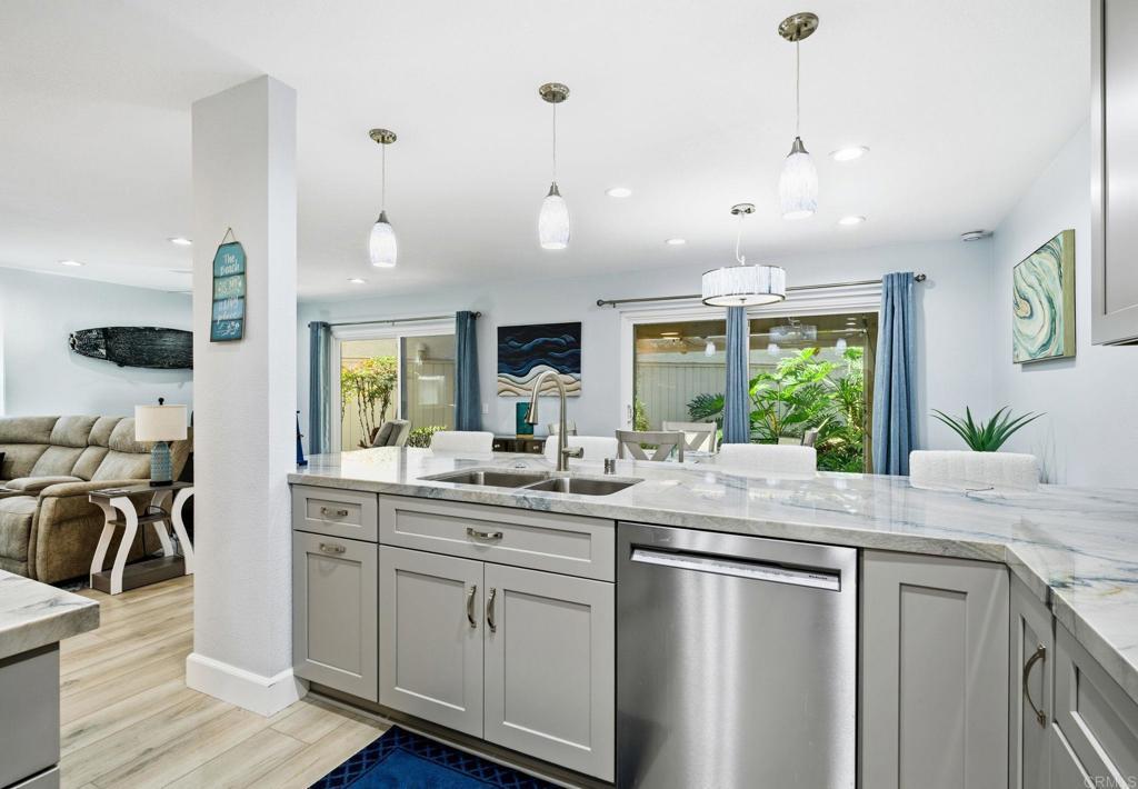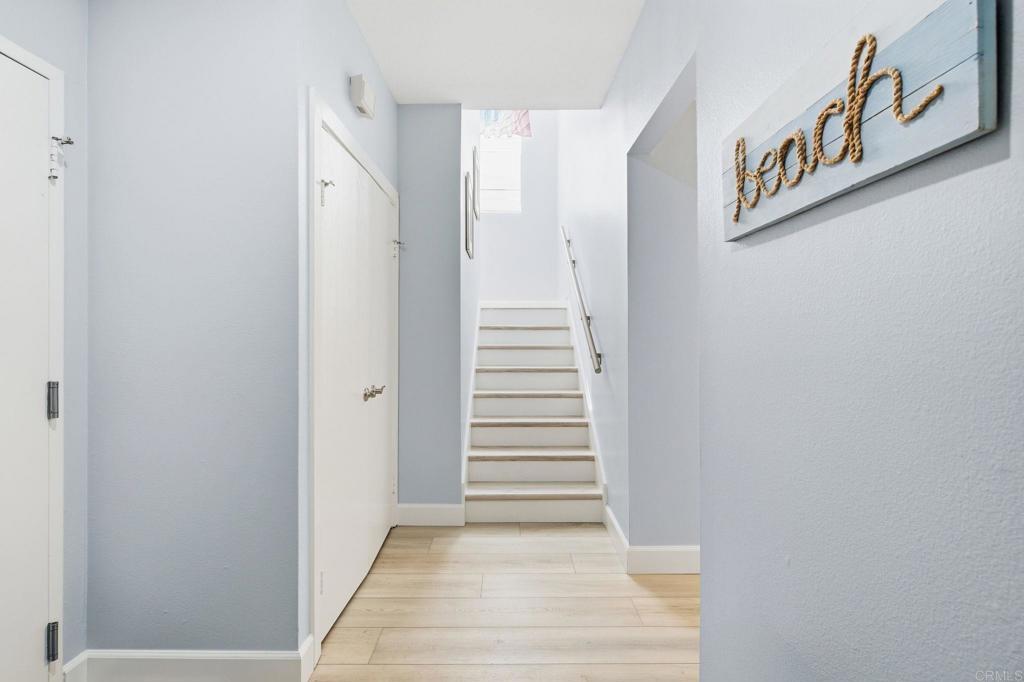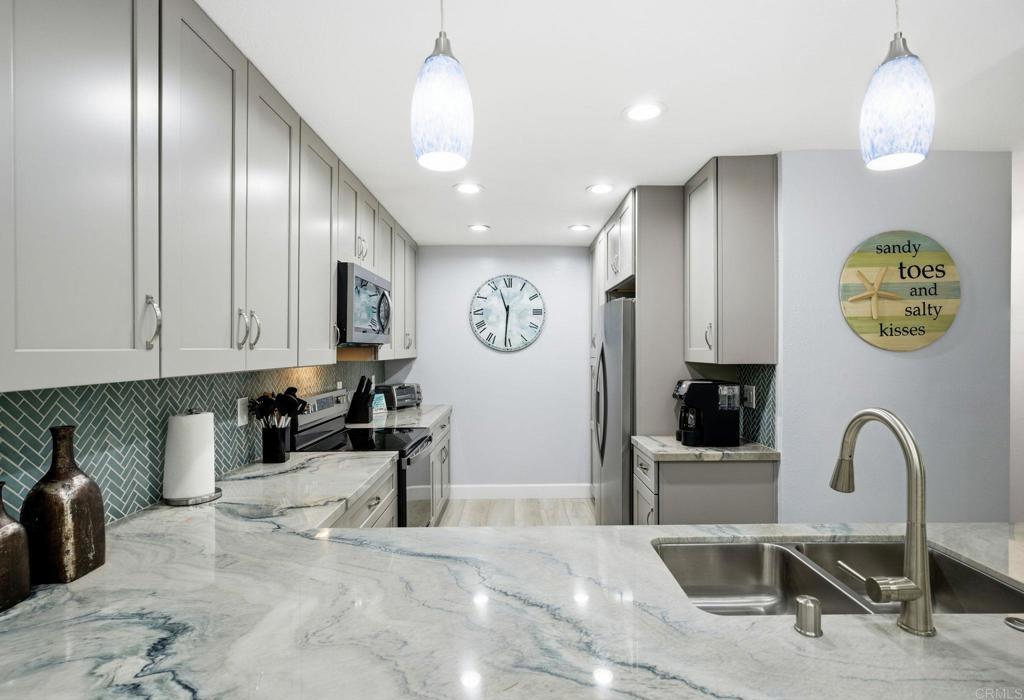 Welcome to this beautifully updated 2-bedroom, 2.5-bath condo in the gated community of Agua Hedionda west of I-5. This move-in ready home has been thoughtfully refreshed throughout with modern style and quality finishes. The remodeled kitchen features new appliances, sink, cabinets, countertops, and fixtures. Additional upgrades include vinyl plank flooring, recessed lighting, new dual-pane windows (including two new sliders downstairs), and modern window coverings. A convenient half bath on the main level offers a new vanity and toilet, along with a newly installed pocket door to maximize space. The interior has been freshly painted, including all doors and ceilings, and enhanced with new baseboards and casings. Upstairs, both bathrooms have been completely renovated with new shower stalls, vanities, toilets, and fixtures. Comfort is ensured year-round with mini-split heating and A/C units on the first floor and in both bedrooms. Enjoy indoor/outdoor living with a private patio accessible from both the living and dining rooms. Additional conveniences include indoor laundry, direct access from the attached garage, a designated parking space, and a locked storage cabinet in the garage. The community pool is located just across the parking lot offering easy access for relaxation and fun. Move-in ready and ideally situated near the lagoon, beaches, shopping, and freeway access—this is coastal living at its best. This property also offers excellent potential as an investment opportunity, with the flexibility to be rented for 30 days or longer.
