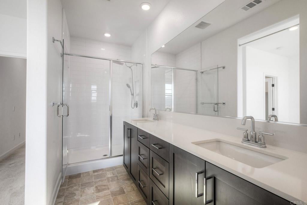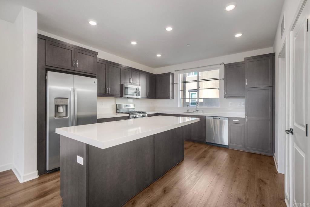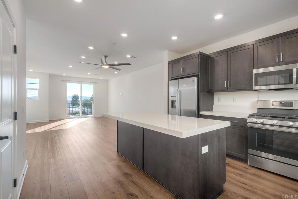 With beautiful area views and a convenient yet quiet location, plus a sophisticated interior with extensive upgrades, this airy, modern home offers a relaxing lifestyle. Set in a gated community with resort-like amenities, the home allows for easy access to the pristine nature trails of Elfin Forest, CSU San Marcos, local freeways and restaurants. High ceilings and a seamless open floor plan create an expansive atmosphere for the home, which offers gorgeous, unobstructed views of Elfin Forest from the first floor bedroom suite, the primary bedroom and the balcony off the family room. With smart home technology including a smart lock and surround sound, nine fully owned solar panels, LVP floors and a reverse osmosis water purification system, the residence surpasses every expectation. The bespoke gourmet kitchen sets the home apart, with its quartz counters and stainless steel appliances, which include a gas range. Open to the family room, the kitchen also has a large center island with counter seating and recessed lighting. The bedrooms all have private bathrooms and walk-in closets, making the home perfect for multi-generational living and/or modern lifestyle requirements. A full size laundry room with custom cabinets and newer appliances that convey and a two car attached garage with an EV outlet (220V NEMA 14-50). A private courtyard with a turf upgrade extends the living space. Other highlights include a whole-house water softener, Ring security, a smart thermostat, smart lights and exhaust fans, plus a high-end ceiling fan in the family room and a central HVAC system. Marvel at spectacular daily sunsets, enjoy the neighborhood with its pool/spa, four playgrounds and BBQ area, go for an adventure on the 11 miles of hiking, biking and equestrian trails at Elfin Forest, and cap the day off at one of the many fun nearby locations such as Cheval Winery, Vintana or Stone Brewing.