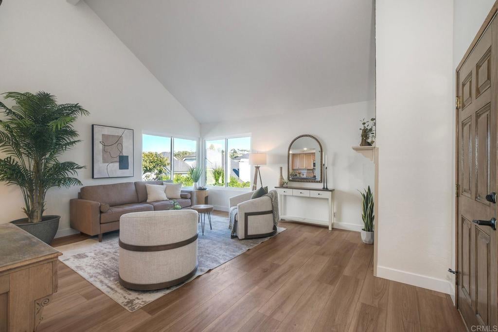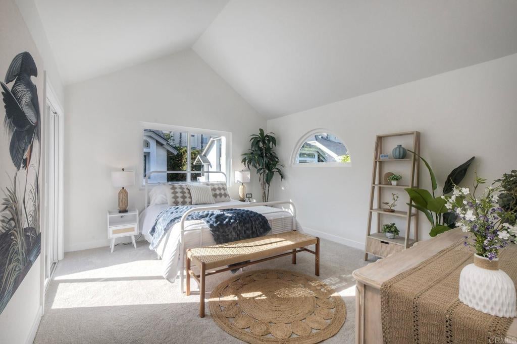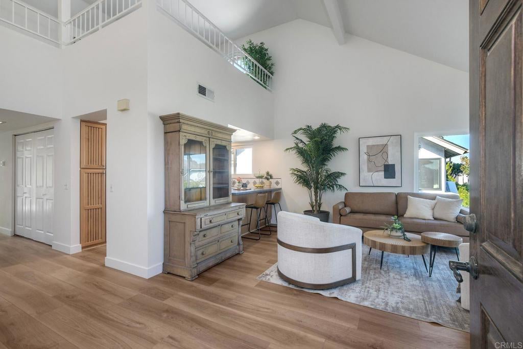 Welcome to Triple Crown Del Mar—where everyday living feels like a coastal getaway. This beautifully updated residence offers 1,426 sq ft of bright, airy living space perfectly positioned near the ocean and everyday essentials. Just ½ mile to the sand, this elevated end-unit delivers the true coastal dream with vaulted ceilings, no one below, and peaceful pool views that set the tone for relaxed, effortless living. Fresh, modern enhancements include luxury vinyl plank flooring, new carpet, warm white paint, sleek baseboards, and dual-pane windows and sliders, creating a clean and inviting coastal aesthetic. The flexible layout features a spacious loft that functions perfectly as an additional bedroom, office, or creative retreat. The private patio off the primary suite is ideal for morning coffee or enjoying evening ocean breezes. Triple Crown residents enjoy resort-style amenities, including a sparkling pool, soothing spa, lush greenbelts, and a designated dog run—designed for an active outdoor lifestyle by the coast. With Solana Beach and Del Mar’s beaches, Cedros Design District, Flower Hill Promenade, top dining, hiking/biking trails, and the Solana Beach train station all within minutes, this location offers the ultimate North County coastal living experience. A move-in-ready beach-close home that embodies comfort, convenience, and the timeless appeal of North County Coastal living.
