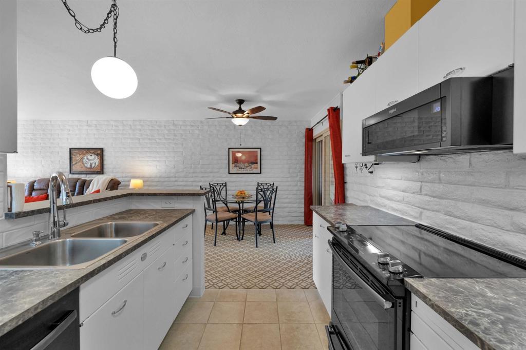 Villas Borrego 1 bedroom, 1 bath end unit condo just a short walk to town with shopping, dining, and entertainment. This condo features tasteful updates such as upgraded sliders, bathroom vanity and sink, tile and carpet flooring, and original Geneva Kitchen metal cabinetry as well as updated countertops and appliances. Enclosed patios off the dining room and bedroom plus, an additional patio with a pool view off the living room to enjoy peaceful desert evenings and dark skies. Villas Borrego features two pools for swimming and relaxing. Ideal for a getaway retreat.