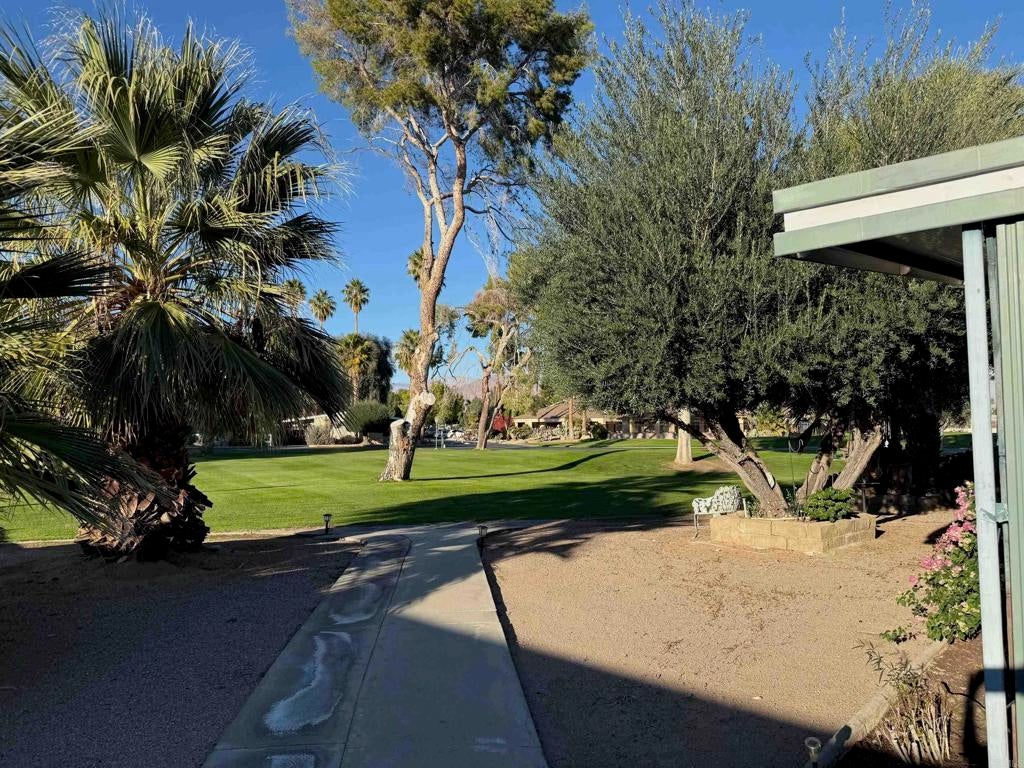 This home has a superb location on the 1st tee of the highly acclaimed Roadrunner Golf & Country Club. You will enjoy the sunrises and sunsets from this fully enclosed screen porch with views of the lush greens, tall palms, & San Jacinto Mountains to the North. Unique landscaping surrounds this triple wide home and comes with your own very mature olive tree. Many upgrades have been completed by the current owner with the brand new dual pane vinyl windows just installed in Nov. A new roof was completed as well as re-leveling of the entire home in 2025. Updated appliances include electric cooktop, stainless steel hood vent, dishwasher, large farmhouse sink & refrigerator to accent the new countertop and a tankless hot water heater. Along with low flow fixtures in both baths the home has new, wood like, luxury vinyl plank flooring. The living room has a peaked cathedral ceiling with lots of natural light and direct access to the screened patio. The family room has a sliding glass door out to the porch as well as a mini-split system to go along with central forced air and heat. The fireplace is ready for an energy efficient electric insert and is spacious enough for large sectional furniture. Two types of walk-in closets in the main bedroom add extra storage space or an art & craft room. The main shower has been remodeled and is a "walk-in" with custom ceramic tile & window. There is a shed for outdoor storage and a covered carport for 2 vehicles. The clubhouse, salt-water pool, mineral spa, gym, billiards and shuffleboard are all within a short walking distance. This community is gated, quiet and serene. Come enjoy Borrego Springs Dark Sky ambiance. Call me today!