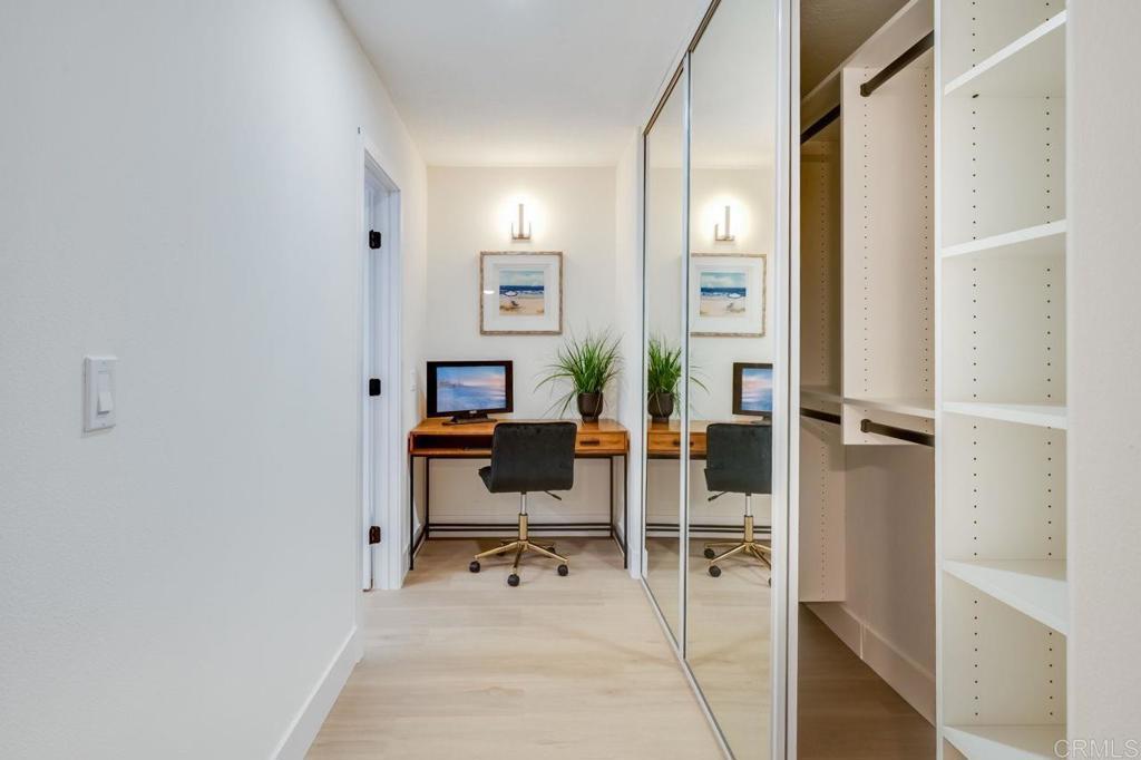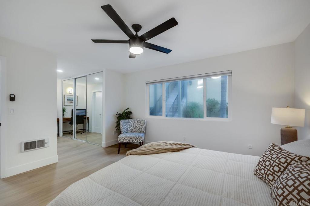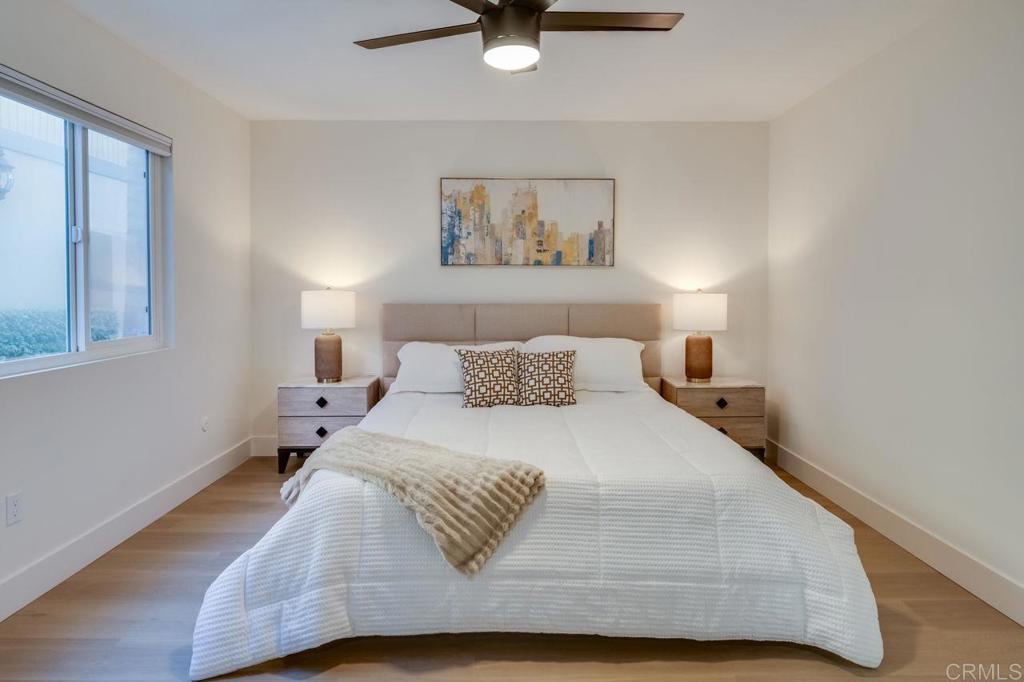 Welcome to this beautifully remodeled lower-level 1-bedroom, 1-bath condo offering 760 sq. ft. of comfortable living space and a private patio with in-unit laundry. This turnkey home showcases a custom renovation featuring plank vinyl flooring, recessed lighting, crown molding, new doors and hardware, and dual-pane windows throughout. The adjacent dining area flows seamlessly into a stunning Shaker-style kitchen appointed with quartz countertops, a designer backsplash, new stainless-steel appliances, and a counter-depth refrigerator with ice maker—perfect for both everyday living and entertaining. The spacious bedroom easily accommodates a king-sized bed and includes custom-designed closets by San Diego Closet Design along with a ceiling fan with LED lighting. The remodeled bathroom and new A/C and heating system complete this thoughtfully upgraded home. Williamsburg Square residents enjoy lush, well-maintained grounds, a swimming pool, a gym, men’s and women’s saunas with showers, and a reservable clubhouse with kitchen—ideal for gatherings. Visitor parking is conveniently located behind the complex. The low HOA fee covers hot water, trash, and sewer. Ideally situated in a highly walkable central location near La Mesa Village, Cowles Mountain, Lake Murray, Grossmont Center & Hospital, Costco, SDSU, and public transportation—this home offers the perfect blend of comfort, convenience, and style.