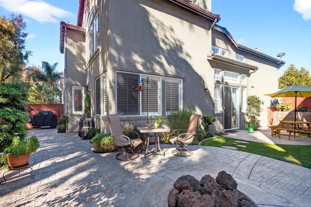 Welcome home to this beautiful residence nestled in the sought after gated community of The Terraces at Sunny Creek. This 3 bedroom, 2.5 bath home blends charm, comfort, and modern efficiency, complete with a leased solar system and Tesla Powerwall for peace of mind. Step inside to an open, versatile floor plan featuring a spacious family room that flows into a kitchen with stainless steel appliances, abundant cabinetry, a built in desk, and generous counter space. The main level also offers a formal living room, dining room, a refreshed powder room, and a convenient indoor laundry room. Outside, enjoy a stamped concrete patio that leads to a large grassy backyard complete with a cozy fire pit, perfect for relaxing or entertaining. Upstairs, the expansive primary suite provides a private retreat with a walk in closet and en suite bath, while two additional bedrooms and a full bathroom offer comfort and flexibility for the entire household. Residents of The Terraces enjoy a warm, community focused atmosphere with beloved annual traditions like 4th of July parades and summer picnics, along with a playground, dog park, and convenient RV and boat storage. All of this is located within the highly rated Carlsbad School District and just minutes from Highways 5 and 78, beautiful beaches, shopping, golf, Legoland, and Carlsbad Village, making this home an exceptional blend of location, lifestyle, and thoughtful features.
