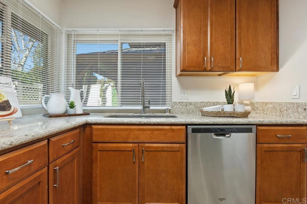 Welcome to this beautifully updated, turn-key 2-story townhouse nestled in the picturesque community of North Escondido Hills. This charming home features three spacious bedrooms and 1.5 baths, including a newly remodeled primary bath with white subway tile and a wide wood dual-sink vanity. Upstairs, new luxury vinyl plank flooring adds a fresh, modern touch. The remodeled kitchen boasts newer cabinets, granite countertops, and stainless steel appliances, complementing the home’s clean, contemporary style. Recent updates include new interior paint and windows, while a new energy-efficient furnace and A/C, plus a new water heater, all installed in 2024, will ensure comfort year-round. A Ring camera system is already installed for added peace of mind. The main living area flows seamlessly to a fully fenced private backyard, perfect for outdoor barbecues, entertaining, or simply relaxing with family and friends. The pet- and kid-friendly yard includes a grassy area, creating an ideal outdoor space. Additional conveniences include an attached one-car garage with laundry hookups, plus two parking spots and plenty of guest parking. The community offers resort-style amenities, including a two community pools, relaxing spa, tot-lot, greenbelts, walking trails and mature landscaping providing a welcoming environment and easy maintenance with all common areas cared for by the HOA. Situated on a cul-de-sac with no one directly behind and near the greenbelt, this home enjoys a fantastic location with quick access to the I-15 and Hwy 78, schools and shopping. It’s the perfect combination of modern updates, functional living space, and a peaceful, convenient neighborhood.