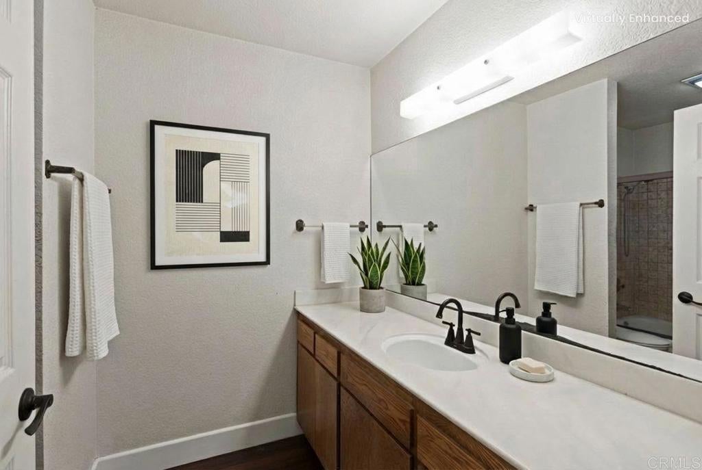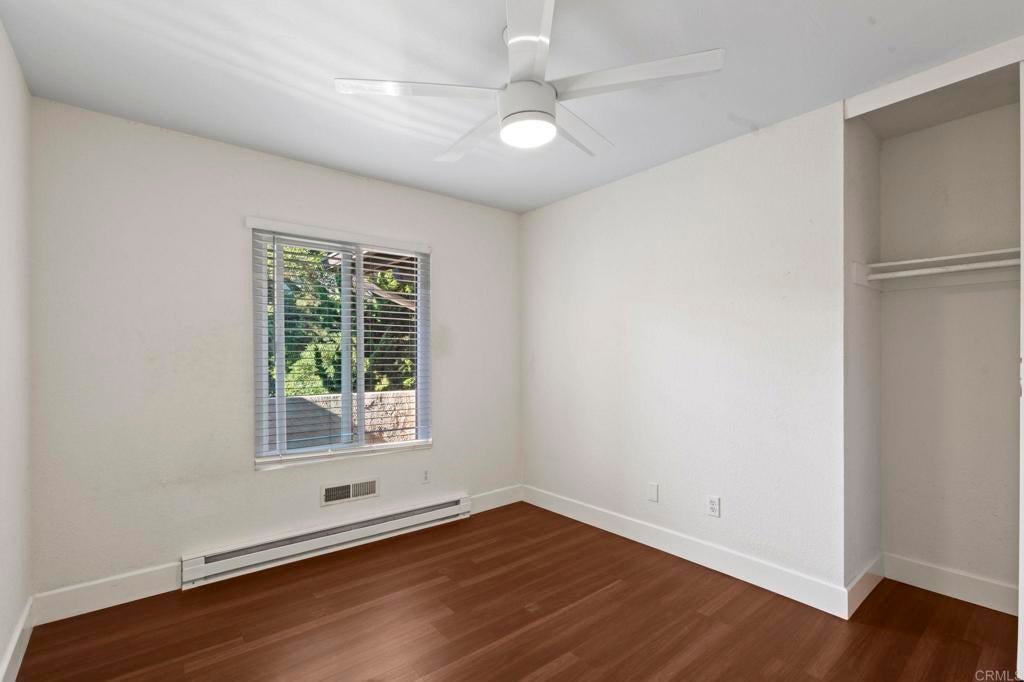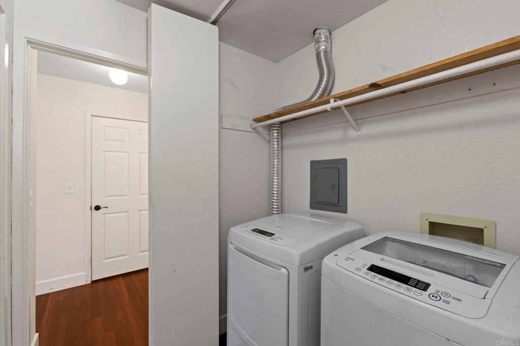 Opportunity knocks on this 2-bedroom 2 bath 1,164 square ft Ruette Le Parc unit that rarely comes available in this community. Keep it the way it is or let your creative skills go wild and remodel to your style and budget. No units above and private. Vaulted ceiling in living room, double pane windows, wood laminate flooring throughout, small patio for outdoor furniture. Located on the west side of development away from freeway with great walking score to shopping, restaurants, and services. Two common area pools and spa. The Village of Del Mar and World Class Beaches are located just a short distance west. The washer, dryer and refrigerator included. One car garage and additional parking available. Community pool, spa and more! Virtual staging