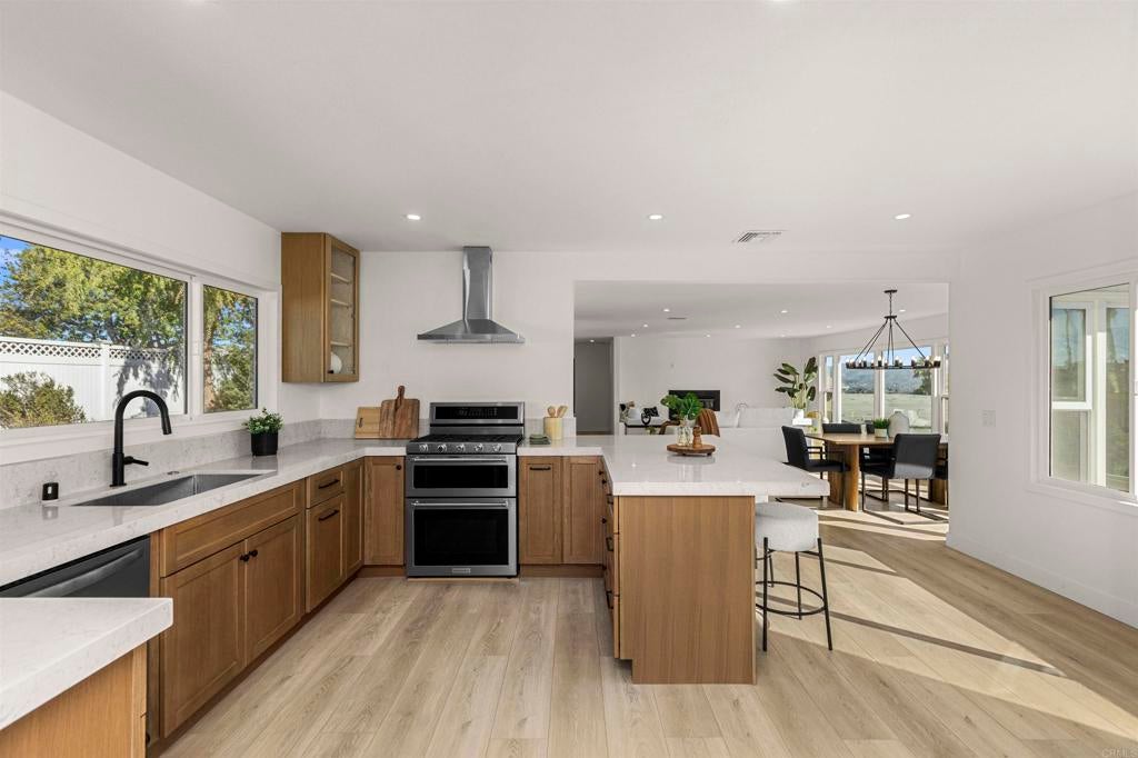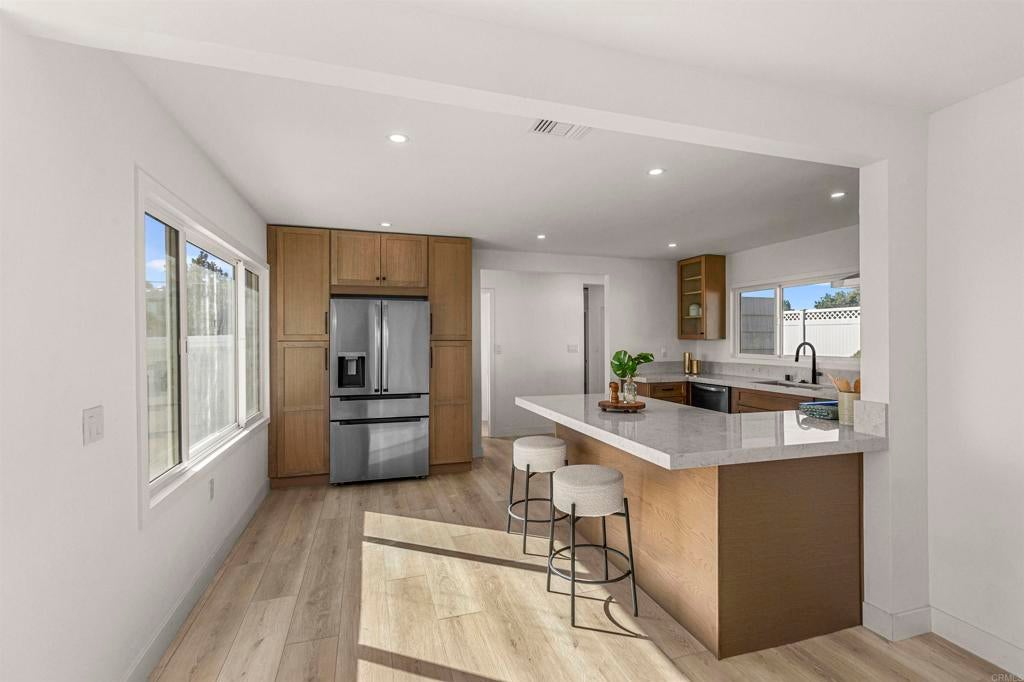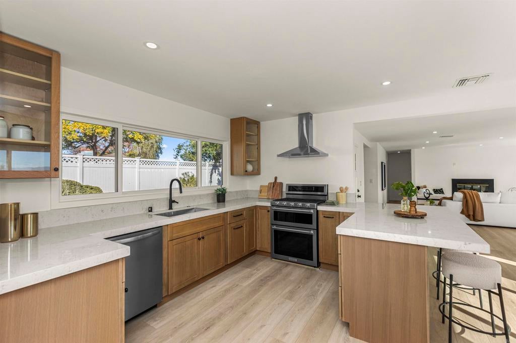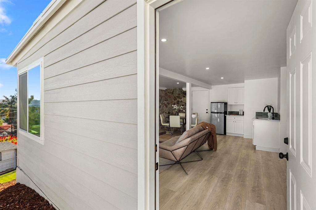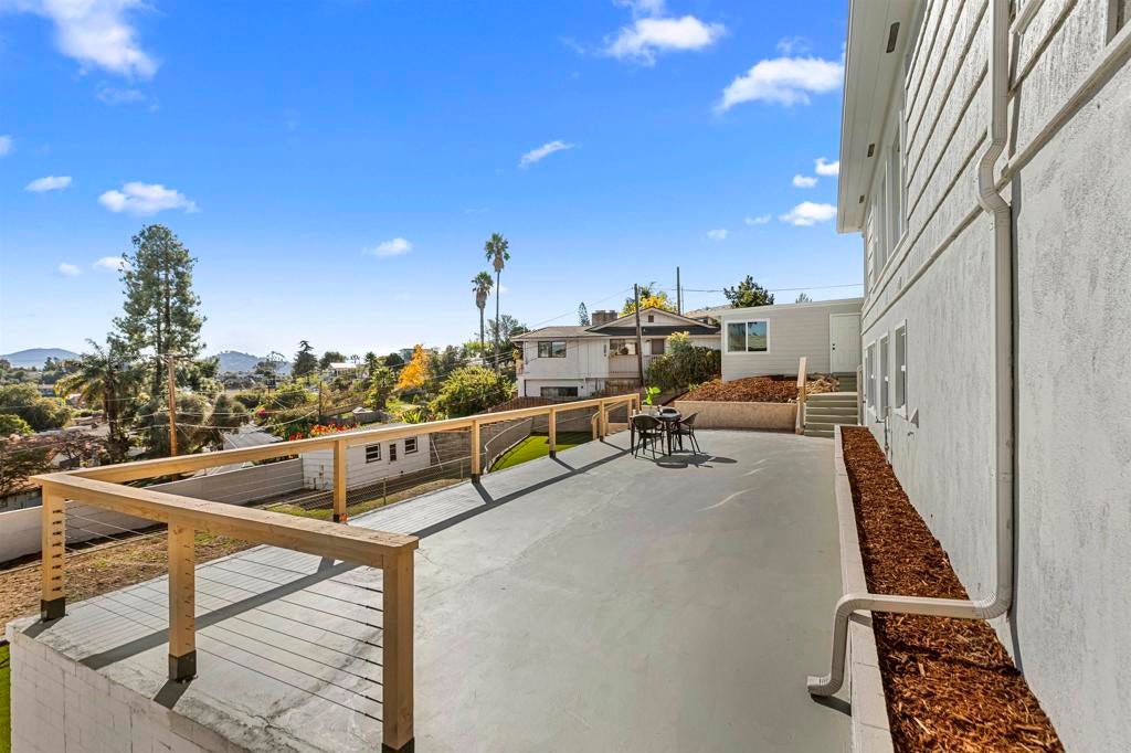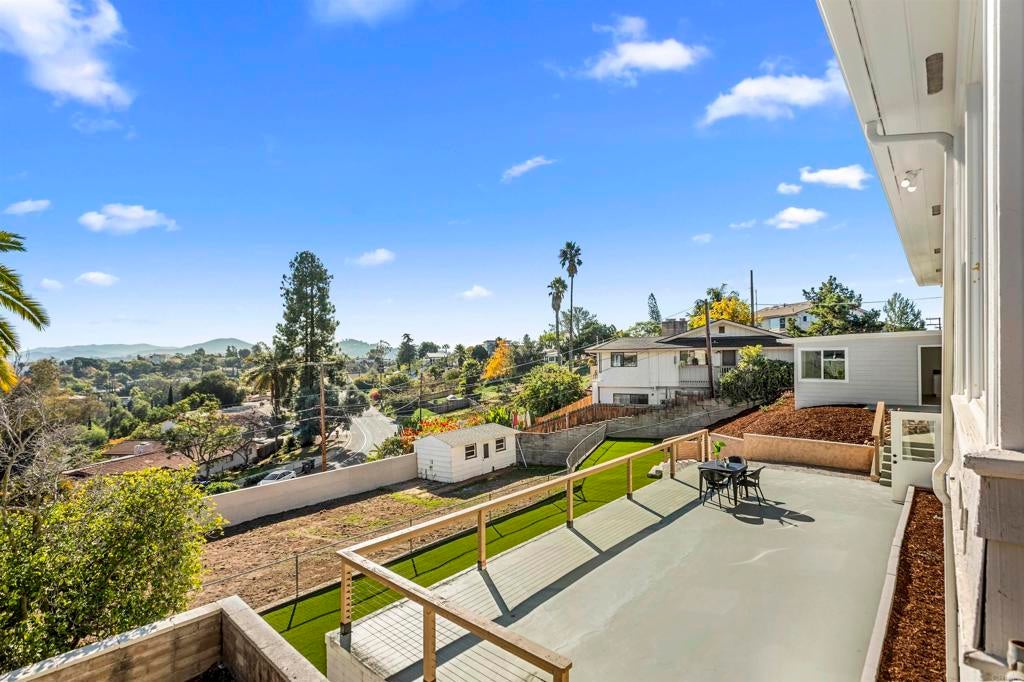 Welcome to this exceptional Fletcher Hills residence. Meticulously remodeled and tucked away at the end of a quiet cul-de-sac, this stunning 4-bedroom, 3-bath home showcases breathtaking canyon views and a thoughtfully designed layout ideal for modern living, entertaining, and multi-generational flexibility. Adding tremendous value is a **Detached Studio** complete with a kitchenette and bathroom—perfect for guests, a private office, creative space, or potential rental income. The main residence features an open, light-filled floor plan enhanced by high-end finishes and designer details throughout. The chef’s kitchen is equipped with beautiful Lumataj Quartz Countertops and top-of-the-line appliances, seamlessly connecting to the main living areas for effortless entertaining. The bathrooms are elegantly finished with warm Zellige tile, adding timeless character and sophistication. There is also a finished basement with a full shower as additional flexible space ideal for a gym, media room, or bonus living area. Outdoor living truly shines at this property. Enjoy a large entertainment deck, ideal for gatherings while taking in the peaceful canyon backdrop. A newly installed low-maintenance turf pad adds to the outdoor appeal, while a rare, nearly flat and expansive pad offers endless possibilities—create a large backyard, add an ADU, or design the outdoor oasis of your dreams. Located in a top-rated school district and just minutes from shopping and dining. With premium upgrades, stunning views, and exceptional future potential, this Fletcher Hills gem is a rare opportunity to own a truly adaptable home in one of East County’s most desirable communities.