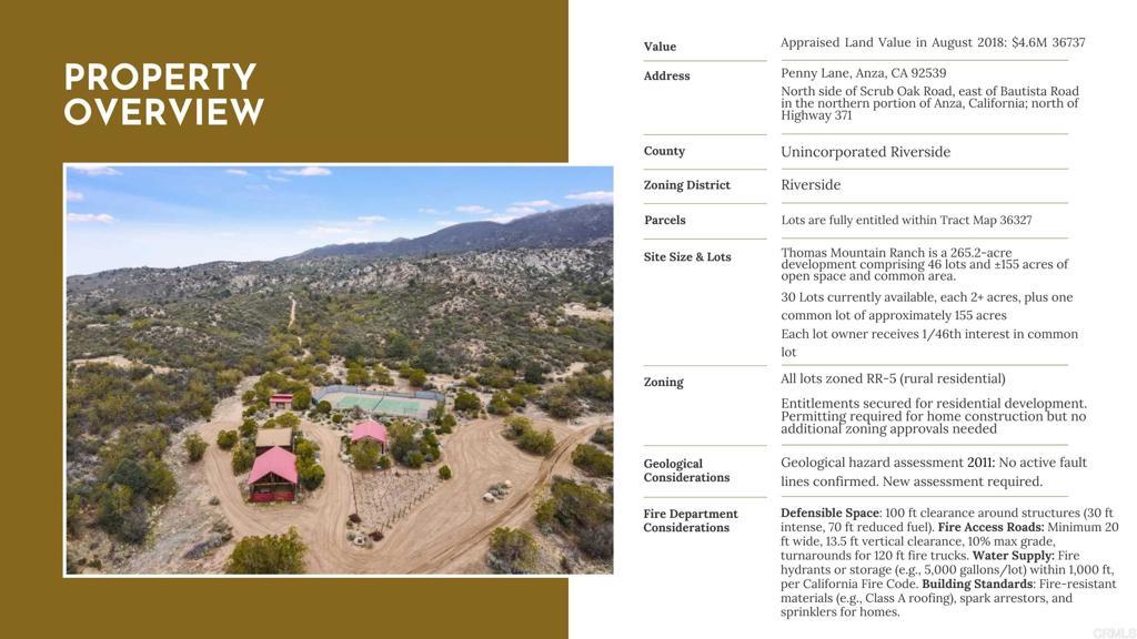 Imagine owning land that doesn’t just change your address… it changes your nervous system in the best way possible. Welcome to Thomas Mountain Ranch a rare opportunity to claim 2 acres of peace, freedom, and possibility inside one of Southern California’s most breathtaking gated communities. This is where the American Dream evolves. With as little as 5% down, you can build the life you’ve been visualizing: • A tiny home sanctuary • A modern modular or barndominium • A custom estate with room to expand • A second home, ADU, or long-term investment • Or simply secure the land now and build later (Yes there are lowdown financing options just to purchase the land.) • One-time close construction loans available • Land + build included • No payments until the home is complete • Some of the lowest rates available Many describe Thomas Mountain Ranch as the next Palm Springs of Riverside County only quieter, greener, and with better weather. This is equestrian and agricultural living at its finest. Grow your own food. Ride your horses at sunrise. Walk trails that calm your mind. Breathe air that reminds you who you really are. You truly have to experience it to understand the magic. Picture yourself waking up on land where every inch radiates intention, tranquility, and love a community carefully cultivated for those who value nature, privacy, and expansive living. Thomas Mountain Ranch spans 256 acres, including • 155 acres of shared HOA open space • 1/46 deeded ownership interest • Miles of hiking, biking, and horseback riding trails • Vineyard, gazebo, horse barn, and gathering spaces Starting at just $111,000/Parcel for 30 improved 2-acre lots, this is one of the most attainable ways to step into a luxury land lifestyle in Southern California. Every detail has been thoughtfully planned: • Panoramic mountain views from every lot • High-speed fiber-optic internet • Pre-installed electrical terminal cans every 500 feet (a $50,000+ value per lot) • Paved roads and gated security • Professional tennis & pickleball courts • HOA bathrooms, lush landscaping, and millions invested into infrastructure 36750 Upper Valley Rd, Anza, CA Perfectly positioned: • 22 miles to Idyllwild • 30 miles to Temecula Wine Country • 30 miles to Palm Desert • 41 miles to Palm Springs • 5 miles to Cahuilla Casino Hotel More and more people are choosing peace over pressure, land over congestion, and intentional living over noise. Whether you’re ready to build now or secure a powerful investment for your future Thomas Mountain Ranch is calling the version of you who’s ready for more space, more meaning, and more alignment. Come feel it. Trust what your body tells you. And step into the life you’ve been preparing for. Welcome to Thomas Mountain Ranch ~ where your next chapter begins. **SELLER FINANCING AVAILABLE INQUIRE FOR MORE INFORMATION**
