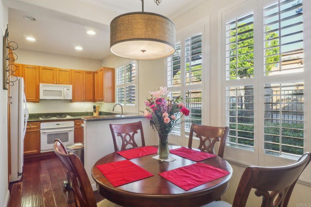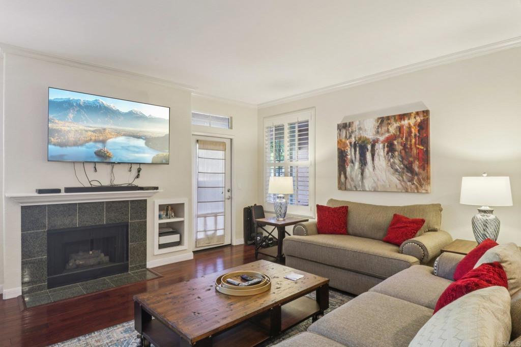 This stunning ground-level condo at 10978 Serafina Ln #69 is a rare find—it was originally the community's model home, offering premium finishes and an impeccably designed floor plan. Experience luxury from the moment you step inside with gorgeous, rich cherry hardwood floors extending throughout the main living areas, complemented by custom wood shutters on every window for light control and privacy. The open and inviting floor plan features a spacious living room with a cozy fireplace that flows seamlessly to a private patio, perfect for enjoying the San Diego indoor-outdoor lifestyle. The kitchen is both functional and beautiful, offering warm cabinetry, granite countertops, and breakfast counter seating. Located in the highly sought-after Savannah Terrace community, residents enjoy resort-style amenities including a sparkling pool, spa, sauna, steam room, gym, media room, library, barbecue areas, and tennis and racquetball courts. This exceptional location is within the boundaries of the highly-rated Poway Unified School District. Enjoy easy access to shopping, dining, parks, and freeway access in the desirable Sabre Springs neighborhood. This is an opportunity to own a perfectly appointed, move-in-ready model home in one of San Diego's best communities!
