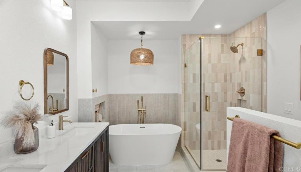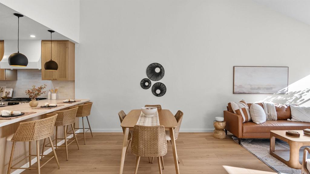 Welcome to this beautifully remodeled townhome in the sought-after Las Floras community of Bernardo Heights, offering the privacy and feel of a single-family home. This exceptional 3-bed/2.5-bath features a rare layout with two spacious primary suites—one conveniently located on the first floor and a second oversized suite upstairs, ideal for multigenerational living or hosting guests. The heart of the home is the stunning kitchen, showcasing honed Perla Venata countertops and seamless connectivity to the dining and living areas—perfect for both everyday living and entertaining. Luxury vinyl plank flooring flows throughout, complemented by soaring vaulted ceilings that enhance the home’s open, airy feel. Spa-inspired bathrooms feature double vanities in both primary suites, creating a true retreat-like experience. Upstairs, an additional flex room provides the perfect setting for a home office, gym, or creative retreat. Modern upgrades include a newer HVAC system and furnace, ensuring year-round comfort. Enjoy outdoor living with a charming front courtyard entry and a private rear patio, ideal for relaxing or entertaining. Residents of Bernardo Heights enjoy access to the Bernardo Heights Community Center, offering a true country club lifestyle with pools, spa, tennis courts, fitness room, billiards, newly added pickleball and basketball courts, and elegant lounge areas. Ideally located just a short walk to Lucido Park, Bernardo Heights Middle School, and Rancho Bernardo High School, this home blends luxury, convenience, and lifestyle in one of North County’s most desirable communities.