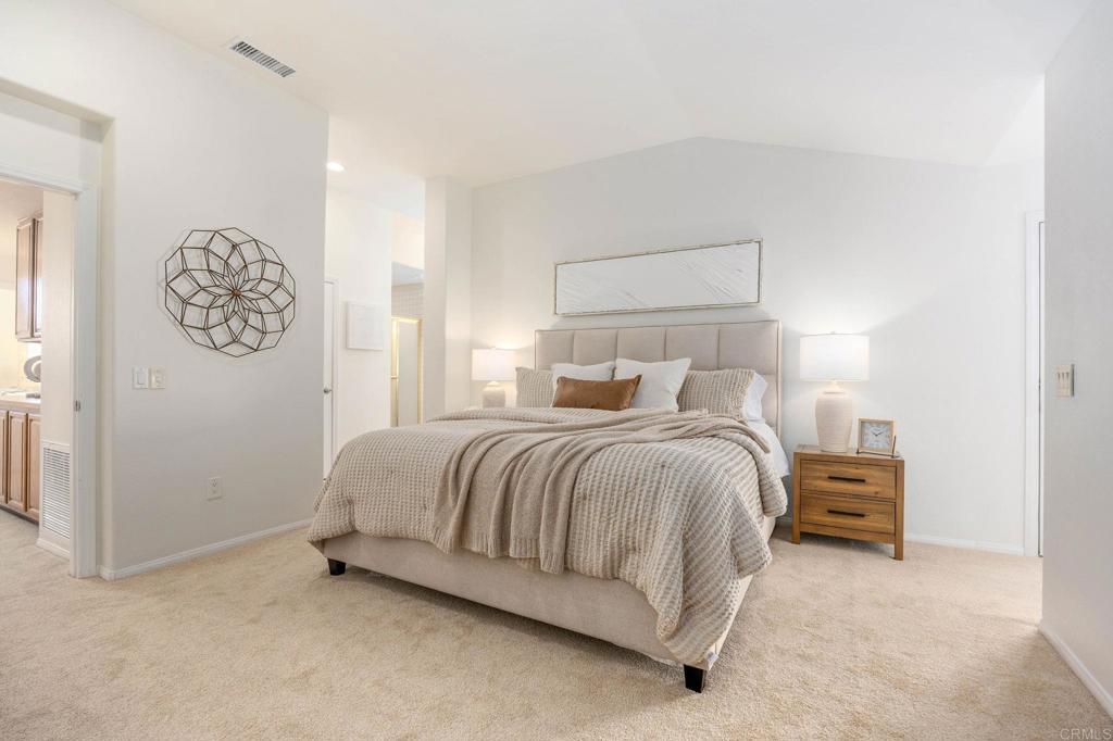 NEW LOOK — MUST SEE! Freshly Updated Custom Home in Highly Desirable Windsor Rose. Now refreshed with new interior paint, new carpet and other touches, this charming, one-of-a-kind residence offers a light & bright, move-in-ready feel in one of the area’s most peaceful and sought-after neighborhoods. Thoughtfully designed for flexible living, the home includes a third bedroom addition—that can easily function as an office, gym, guest space, or creative retreat tailored to your lifestyle. Inside, rich hickory wood floors anchor the formal living and dining areas, complemented by vaulted ceilings and a dramatic double-sided fireplace that adds warmth and architectural interest. The kitchen features granite counter tops, stainless steel appliances, newer cabinets and a functional layout ideal for both everyday living and entertaining. The spacious primary suite is a true retreat, offering a dual-sink vanity, soaking tub, separate shower, and a generous walk-in closet. Step outside to enjoy a private garden and patio with retractable awning—perfect for morning coffee, alfresco dining, or relaxing evenings at home. Beautiful westerly sunset views can be enjoyed from the front bedroom, adding to the home’s charm. Additional highlights include newer appliances, new windows in most areas, HVAC, and hot water heater and an oversized two-car garage. Located on a quiet street in the coveted Windsor Rose neighborhood—with no HOA fees—this home is just minutes from Lake San Marcos, where golf, pickleball, swimming, dining, and lake activities create an exceptional lifestyle. Minutes to some of the best beaches in Southern California, shopping, restaurants, Legoland & more. Come and discover this hidden gem of Lake San Marcos.