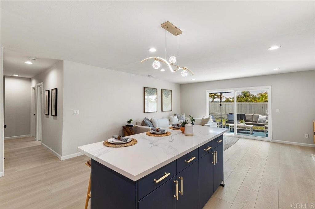 This beautifully single-level, completely renovated home in sought-after La Costa blends modern design with everyday comfort. The heart of the home is a stunning chef’s kitchen featuring commercial-style appliances, sleek finishes, and custom cabinetry with convenient pull-up storage, perfect for both cooking and entertaining. The thoughtfully designed floor plan offers 4 spacious bedrooms and 2 updated bathrooms, providing flexibility for families, guests, or a home office. Step outside to a flat, usable yard, ideal for outdoor dining, play, or future personalization. Enjoy the ease of single-story living in a prime location, just a short walk to the local high school, and close to all that La Costa has to offer. This move-in-ready home is the perfect blend of style, function, and location.