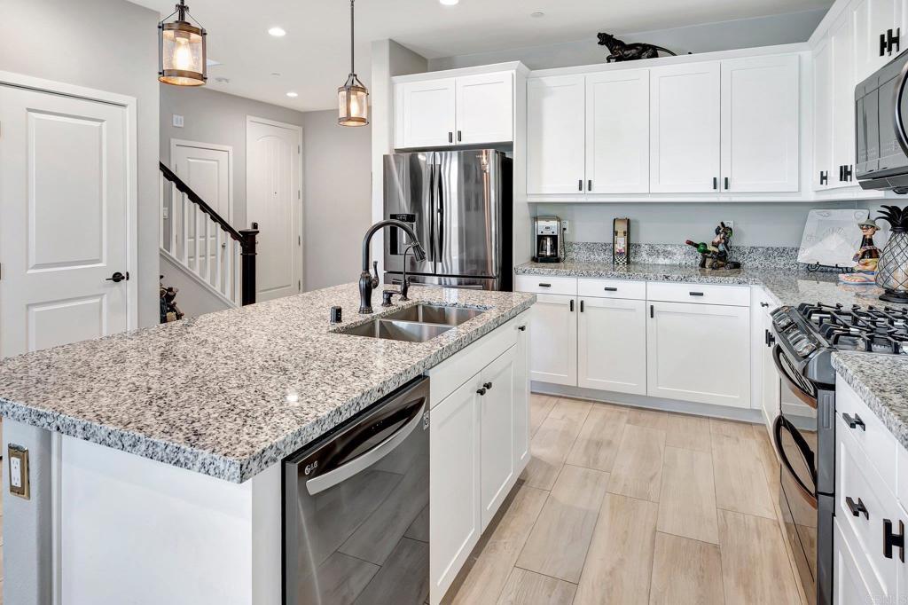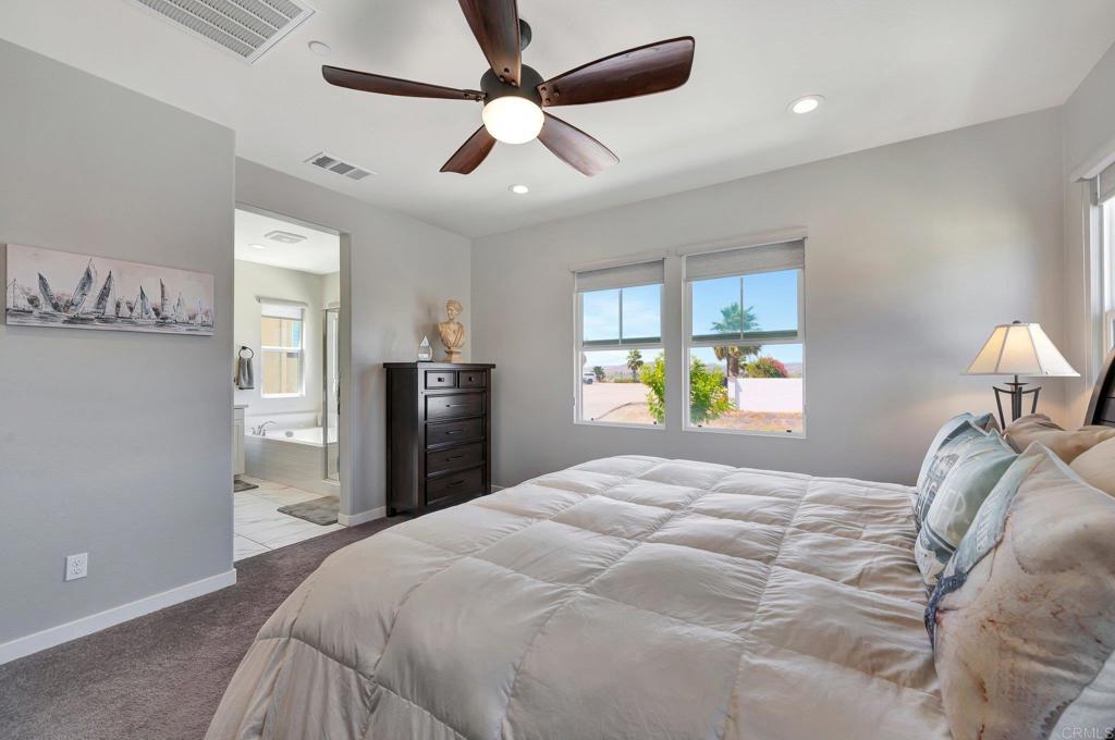 Two primary suites, 4 bedrooms, 4 full baths and bedroom and full bath downstairs! Additional large loft for a game room, living room or even a bedroom 5. Largest floorpan that is very rarely on market, one of the largest yards in the complex, one of the best locations, mountain views, upgrades galore, perfection inside & out! 2 family rooms, 2 master suites. 1st floor with bedroom & full bathroom. Add'tl bedroom upstairs, indoor upstairs laundry room. Extensive gorgeous wood tile lighter color flooring, designer dark hardware, white cabinets with grey slab granite, double LG Ovens, upgraded window treatments, 6 ceiling fans, dual zoned A/C, front door with invisible screen, mirrored wardrobes, all newly painted interior with a designer stair railing, recessed lighting, large bedrooms, large walk in closets. Water softener and reverse osmosis owned and stays with the home. Fully finished garage with 2 Saferacks. The backyard is stunning with extensive pavers, raised planter beds with drip irrigation, tropical landscaping, designer lighting, 10 1/2 ft. tall alumawood patio cover with solar screens, fire pit, large side yard with new artificial turf & a matching pavers stepway. Wonderful breezes. Privacy vinyl fencing. No neighbors in the rear. This is a truly magnificent home and property and is a must see! Seller just installed 2 oversized luxurious showers both in the primary suite and the bathroom downstairs and there is also brand new plush designer carpet! The upgrades, lot, yard and location are truly magnificent. This home is guaranteed to impress!