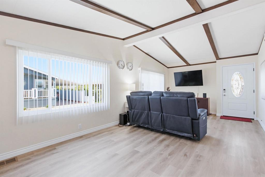 PRICE IMPROVEMENT!! Welcome to Your Oceanside Retreat in this beautifully updated 2-bedroom, 2-bathroom home. Energy efficiency meets contemporary living with NEW Pella dual-pane windows, NEW flooring, a NEWER HVAC system(2020), and fresh PEX water lines throughout. The 40-year roof (2016) provides lasting peace of mind, while the EV charging station keeps you ready for the future of transportation. Discover the perfect blend of comfort and convenience in this nestled in the heart of highly desirable Rancho San Luis Rey, 55+ Senior Community. RENT CONTROL! On a corner lot with spacious outdoor living, this home is 1,384 sq ft. (52x24)+136 sq.ft. CA Room. This thoughtfully renovated residence showcases modern upgrades throughout. The remodeled kitchen serves as the heart of the home, while both bathrooms have been tastefully updated—including the primary suite featuring a relaxing jacuzzi tub for those well-deserved moments of tranquility. Step outside to your corner lot oasis featuring a charming pergola-covered patio, perfect for morning coffee or evening gatherings. Garden enthusiasts will appreciate the dedicated outdoor garden area and greenhouse, accented by a vinyl fence for added privacy. This private senior community offers LOTS of FUN activities! 2 heated pools year 'round, tennis courts, card/billard rooms, Pickleball. Just about 5 miles to the Harbor & Pier and the San Luis Rey River Trail bike path that takes you all the way to the beach. With a monthly lot lease of just $586, this home offers an affordable gateway to the coveted Southern California lifestyle without sacrificing quality or comfort. Don't miss this opportunity to own a move-in-ready home where every detail has been carefully considered. Schedule your showing today!