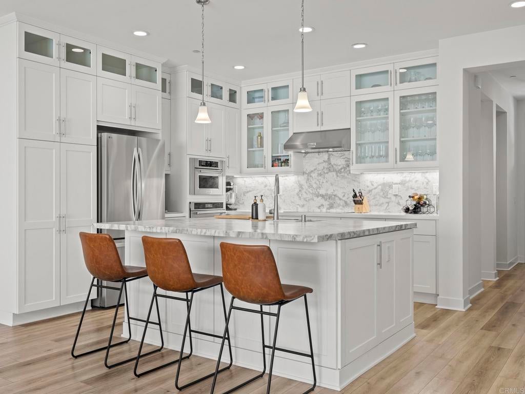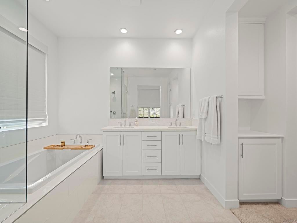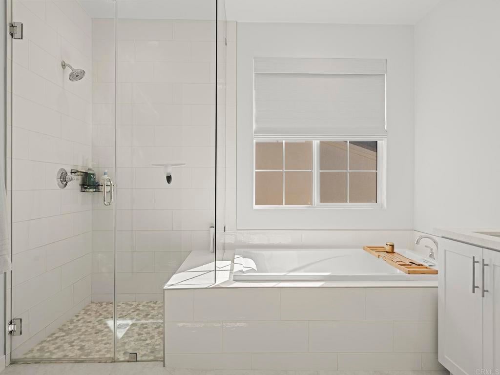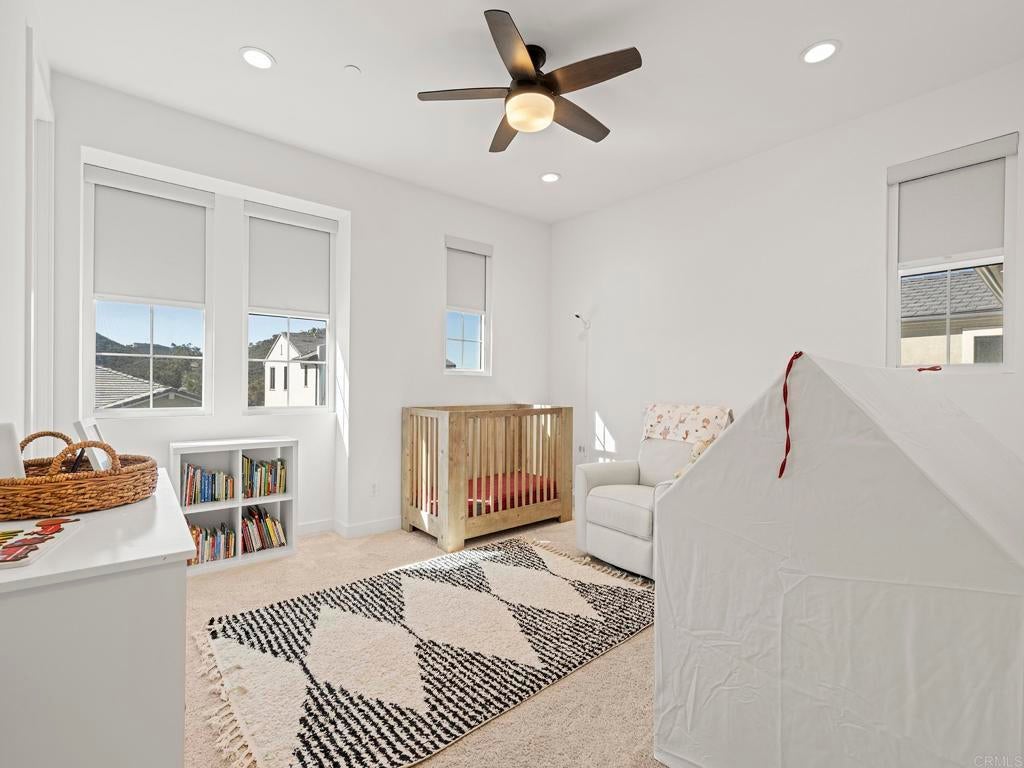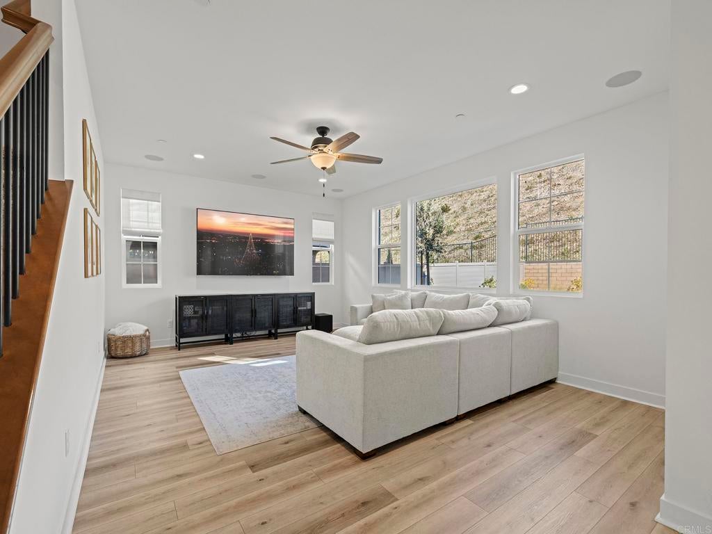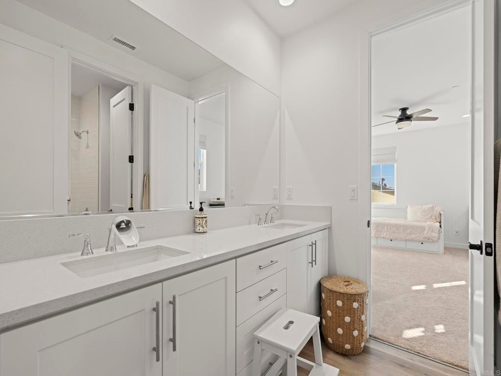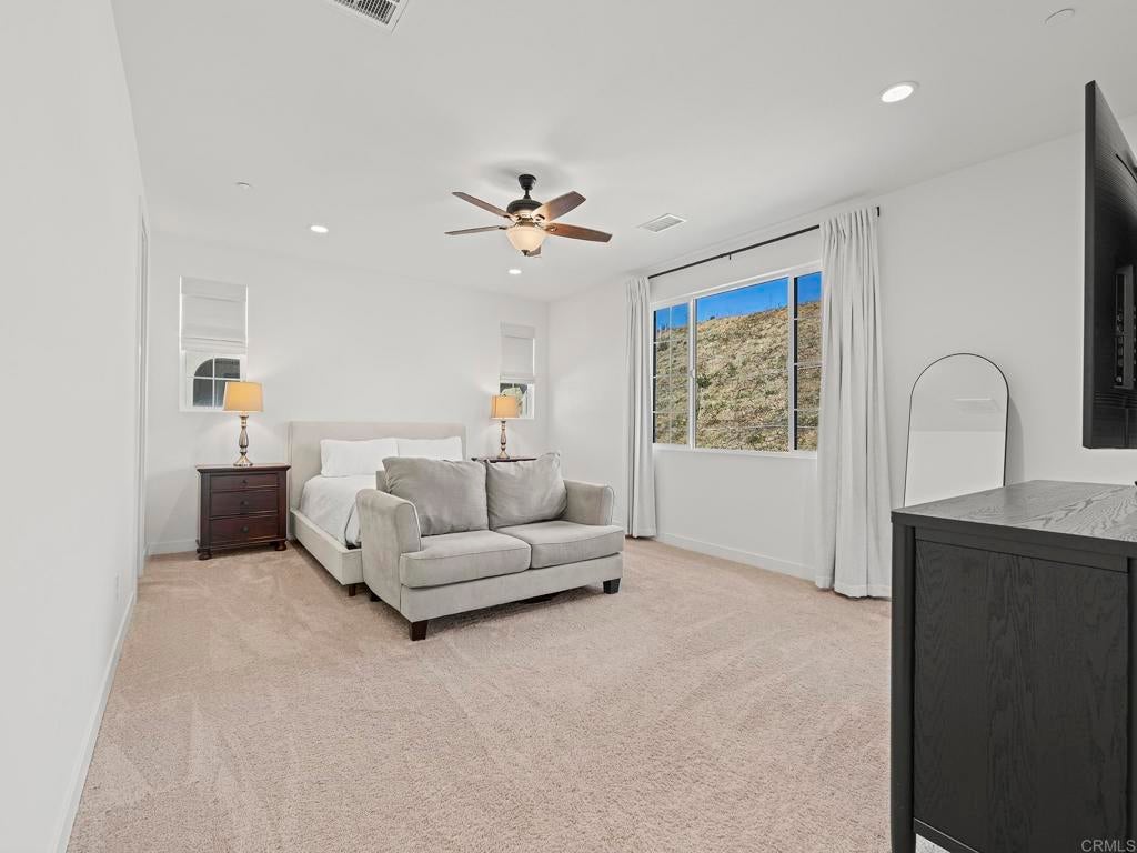 Welcome to your Haven in the Hills. More like north Vista, this home is tucked inside the gated Provence neighborhood at The Havens, a one-of-its-kind community. This exquisite newly-built 2024 home offers easy living surrounded by sweeping mountain & hillside views. Thoughtfully designed for indoor-outdoor enjoyment, this 2,842 sf. two-story home includes a Full Bedroom Suite on the Main Level—ideal for office, guests or multi-generational living. The home features 4 bedrooms and 3.5 baths. At the center of the home is a stunning gourmet kitchen with a generous island, European quartz countertops with full-height backsplash, stainless steel KitchenAid appliances, and satin white cabinetry that spans to the ceiling. The kitchen flows effortlessly into the great room, which opens to the California Room through Bifold-doors, creating a seamless indoor-outdoor experience perfect for entertaining. Luxury vinyl plank flooring enhances the main level, while designer Shaw carpet adds warmth upstairs. The elegant primary suite is a true retreat, wake up to pink-skies off your private deck, spacious walk-in closets, and a spa-inspired bathroom featuring Bella marble finishes & designer-selected accessories radiate luxury. Additional premium highlights include Home Intelligence Smart features, Owned Solar, sensory lighting, upgraded ceiling fans, cooling whole-house fan+central AC, stylish window coverings, surround sound in the great room, and a 2-car epoxy floor garage with extra space for storage complete with a Wallbox Pulsar Plus EV Charging Station. Step outdoors to your beautifully landscaped, low-maintenance/high enjoyment backyard featuring synthetic turf, pavers, and curated plantings—an inviting space to entertain or unwind while enjoying stunning sunrises, sunsets, and hillside views. An enclave inspired by the French Riviera & nestled across from The Havens Country Club (formerly Vista Valley CC) residents enjoy access to 260 acres of open space, scenic hiking trails and future resort-style amenities including the Havens Aquatic Center and Chateau Cal-a-Vie wine tasting and event center. Live the Country Club lifestyle of your dreams located on 540 privately owned acres featuring the challenging as well as stunning Ted Robinson, Sr. designed golf course and home of the world-renowned Cal-a-Vie Health Spa. The Havens Country Club offers a fun, elegant, friendly, and social atmosphere. Just minutes from Vista, Coastal towns and the beach, this exceptional home offers a rare opportunity to enjoy natural beauty, privacy, the perfect climate and elevated living.This popular floor plan & all other homes have been sold out by the builder- Bonus -Premium, top-of-the-line exercise machine with Peloton included as part of a strong offer.
