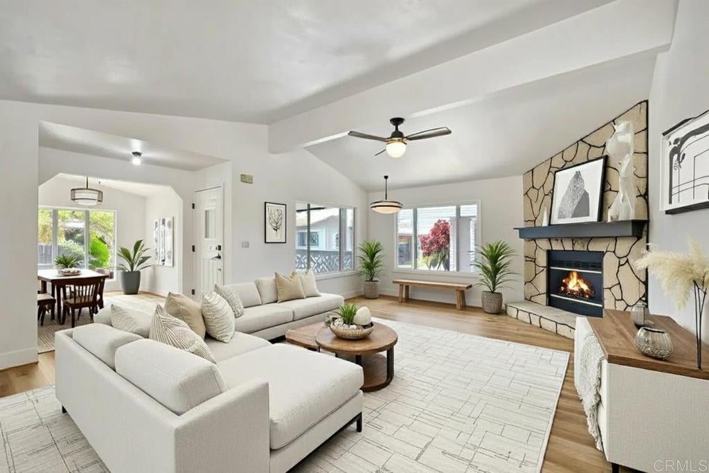 Welcome to your own slice of paradise in your Golden Years! Nestled within the highly sought-after Rancho Carlsbad Estates 55+ community, this beautifully remodeled 3-bedroom, 2-bath home is ready for you to move right in and start living your best life. Step inside and be greeted by inviting luxury vinyl plank flooring that flows seamlessly throughout the open-concept living spaces. The brand-new kitchen is a chef’s dream, boasting stylish quartz countertops, crisp white shaker cabinets, stainless steel appliances, and an elegant Italian tile backsplash. Soaring vaulted ceilings in the living room and kitchen, paired with expansive new windows, bathe the home in an abundance of natural light. Every detail has been thoughtfully considered, from the modern lighting fixtures throughout to ceiling fans in every bedroom for year-round comfort. The primary bathroom is a true retreat, featuring a spacious walk-in shower with a custom frameless glass door, new vanities, designer lighting, and chic mirrors that create a spa-like atmosphere. Step outside to your private backyard oasis, complete with a brand new covered patio deck —perfect for relaxing or entertaining under the SoCal sun. Mature orange trees and tropical landscaping frame a picturesque seasonal creek, offering both beauty and privacy in one of the community’s most desirable locations. Brand new roof is an added bonus! Enjoy an array of resort-style amenities, including a year-round heated pool, spa, fitness center, tennis and pickleball courts, and more. The vibrant clubhouse features a ballroom, table tennis, billiards, card room, arts and crafts studios, and a two-story library. Host gatherings on the outdoor patio with a built-in gas BBQ, or tee off at the on-site public golf course—there’s truly something for everyone! All of this, just minutes from Carlsbad’s stunning beaches, shopping, and dining. Embrace the lifestyle you deserve—welcome home to the Golden Years at Rancho Carlsbad Estates!
