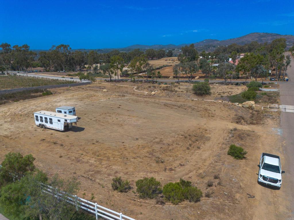 Spectacular Del Sur / Santa Fe Hills residential building parcel; building pad was previously graded and compacted. This large corner lot contains two separate building pads; home pad approximately .64 AC = 27,878 SQFT and the guest house and/or RV garage pad is approximately .18 AC = 7,840; for a combined total of .82 AC=35,719 SQFT. Site affords splendid southerly and westerly views especially from a second story home in this premier location! This is your opportunity to build your estate here on this coveted acreage property in beautiful Del Sur/Santa Fe Hills! Equestrian friendly location! No Architectural Review Board, NO Mello Roos or HOA fee’s; enjoy more freedom to set forth your comprehensive plan & desire here! San Diego County is the governing jurisdiction allowing more flexibility to build a guest home and outbuildings, barns, corrals or pasture to board multiple horses, ADU Additional Dwelling Unit/Guest home living sqft up to a maximum of 1200 SQFT. There is a greater opportunity to personalize your lifestyle on this expansive parcel of land than in other more restrictive locations.