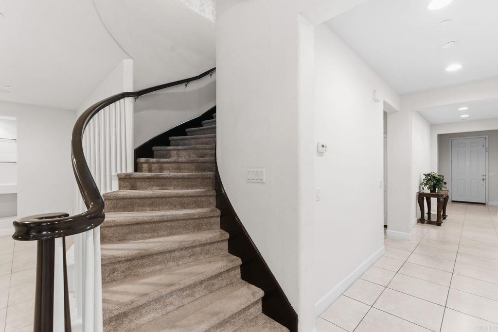 Welcome to one of the largest and most desirable floor plans in the quiet, gated Laurel Pointe community of Vista. Owned by the original owner and thoughtfully customized from the start, this beautifully upgraded 6 bedroom, 3.5 bathroom residence offers approximately 4,200 square feet of well designed living space, making it a rare opportunity within the neighborhood. Laurel Pointe is highly regarded for its peaceful atmosphere, gated security, and sense of privacy. This home is ideally positioned with only two neighboring properties and no homes directly in front, allowing for open north facing mountain views and a calm, private setting that’s hard to find. The exterior is designed for low maintenance living, featuring turf landscaping in the front yard, stamped concrete surrounding the home, retaining walls on both sides, and an enclosed outdoor patio room, creating a private and versatile space for relaxing or entertaining. Energy efficiency is another standout feature, with leased solar, dual pane windows, and an efficient layout that helps keep utility costs manageable. Inside, the home opens to a bright and inviting floor plan anchored by a spacious, upgraded kitchen that truly serves as the heart of the home. The kitchen features extended granite countertops, an oversized granite island, soft close cabinetry, stainless steel appliances, and a large walk in pantry with additional counter space, making it ideal for both everyday living and hosting. Elegant upgrades continue throughout the home, including polished wood staircase railings, a whole home intercom and doorbell system, and built in surround sound speakers in the main living areas for an elevated entertainment experience. The main level offers excellent flexibility with a full bedroom, full bathroom, and a dedicated office or den, all complemented by plantation shutters that add warmth and style. Upstairs, the layout is both spacious and functional, featuring a large loft, a custom bonus room approximately 20 by 18 feet with built in cabinetry, two additional bedrooms, and a convenient upstairs laundry room with sink. The primary suite is a true retreat, highlighted by a beautifully upgraded custom tiled shower, while ceiling fans in multiple bedrooms add comfort throughout. Additional highlights include abundant storage, a freshly repainted garage, and a tankless water heater. The location further enhances the appeal, with the home within walking distance to Guajome Park Academy, a highly regarded K–12 public charter school, as well as Vista Sports Park, which offers synthetic turf fields, baseball and softball fields, a community center, playgrounds, picnic areas, walking trails, and ample parking for year round recreation. Centrally located in North County, the home sits between the 76 and 78 freeways with convenient access to both the 5 and 15, making it easy to commute while still being just a short drive from the beach and everything Vista and the surrounding areas have to offer. This home stands out for its size, privacy, thoughtful upgrades, and prime location within one of Vista’s most sought after gated communities. It offers a rare combination of space, comfort, energy efficiency, and lifestyle.