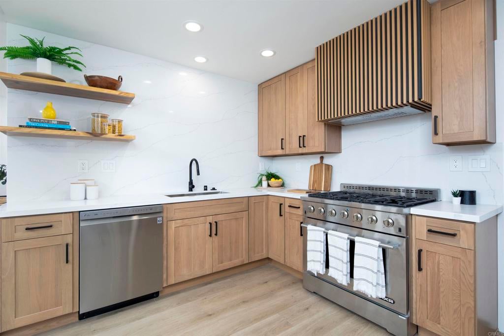 Welcome to this beautifully reimagined 4-bedroom, 2-bathroom home nestled in a quiet, highly desirable Clairemont neighborhood. Thoughtfully renovated from top to bottom, this residence blends modern design with everyday functionality—perfect for both relaxed living and effortless entertaining. Step inside to discover brand-new luxury vinyl plank flooring flowing throughout, complemented by stunning quartz countertops and a chef-inspired kitchen featuring a commercial-grade oven—ideal for cooking enthusiasts and hosting memorable gatherings. The spacious layout opens seamlessly to a low-maintenance, turfed backyard, designed for year-round enjoyment, entertaining, or play. The primary suite is a true retreat, showcasing an elevated spa-like bathroom with elegant porcelain tilework and a striking freestanding soaking tub. Additional highlights include a convenient washer and dryer hookup in the garage, electric vehicle charging capability, and upgrades that enhance both comfort and efficiency. The solar is paid in full so enjoy the convenience of very low electric bills. Located near award-winning schools and tucked into a peaceful, well-established community, this home offers the perfect balance of privacy, style, and convenience—just minutes from everything San Diego has to offer. This is a home you truly need to experience in person.